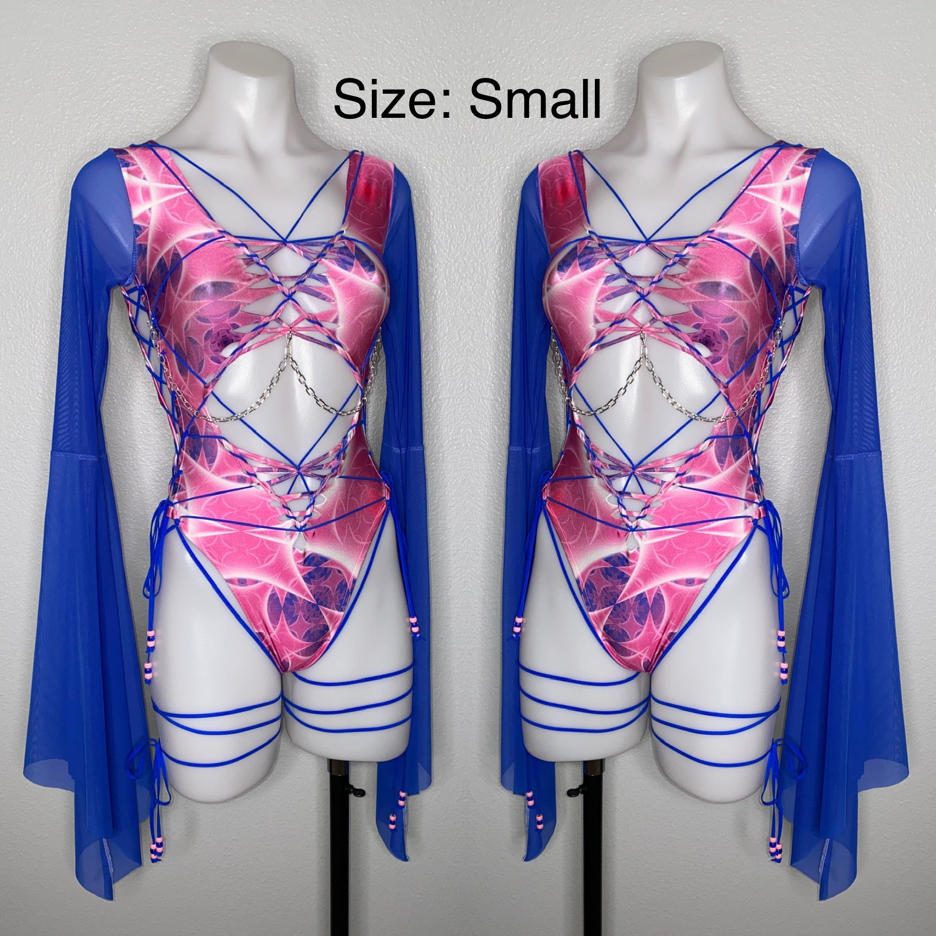 Fabric of bodysuit is one layer of light weight nylon/spandex blend (4-way stretch and breathable) and sleeves are power mesh.