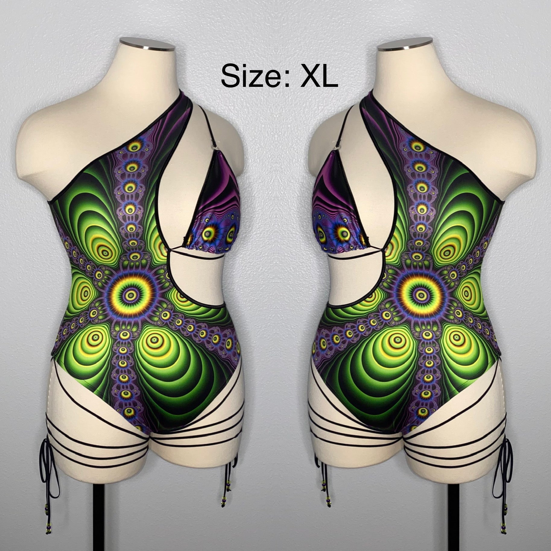 Fabric of bodysuit is one layer of polyester/spandex blend (4-way stretch) Pumayana Artwork print