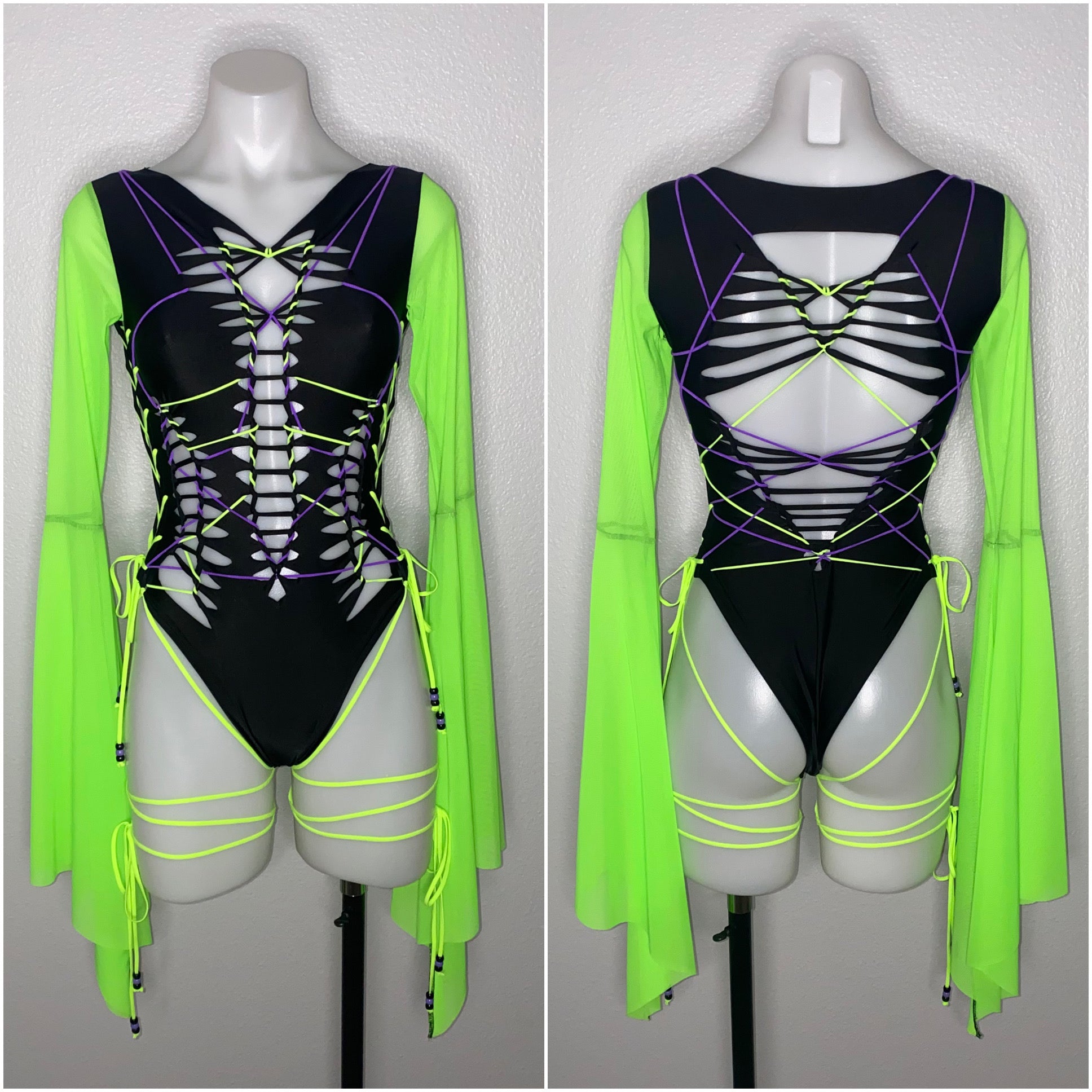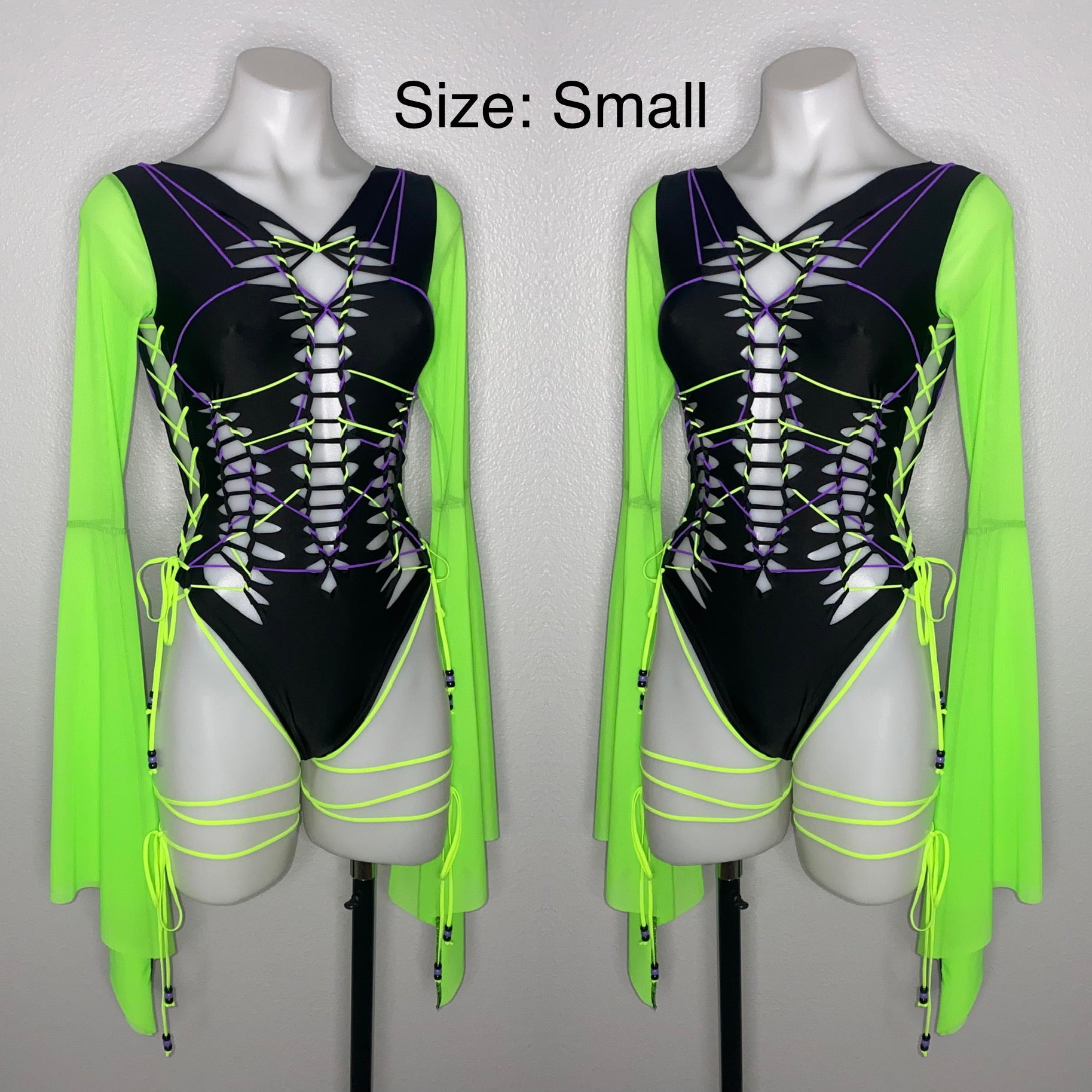 Fabric of bodysuit is one layer of light weight nylon/spandex blend (4-way stretch and breathable) and sleeves are power mesh.