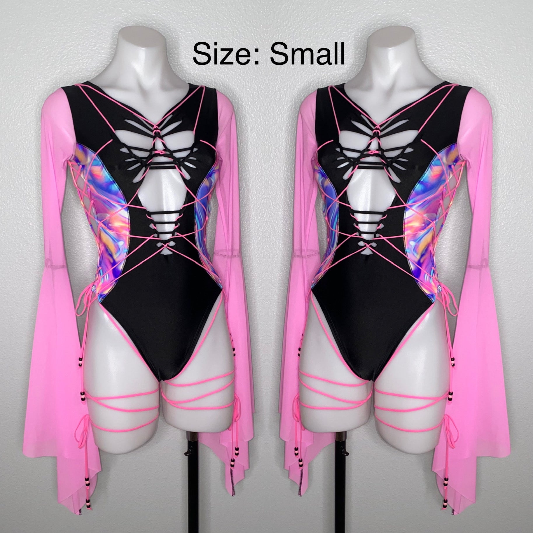 Fabric of bodysuit is one layer of light weight nylon/spandex blend (4-way stretch and breathable) and sleeves are power mesh.