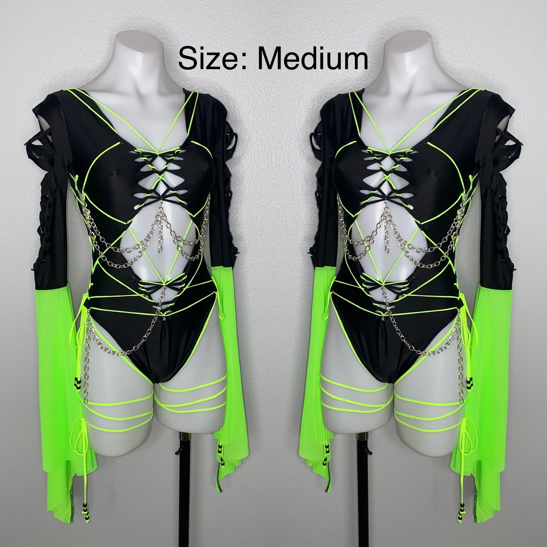 Fabric of bodysuit is one layer of light weight nylon/spandex blend (4-way stretch and breathable) and sleeves are power mesh.