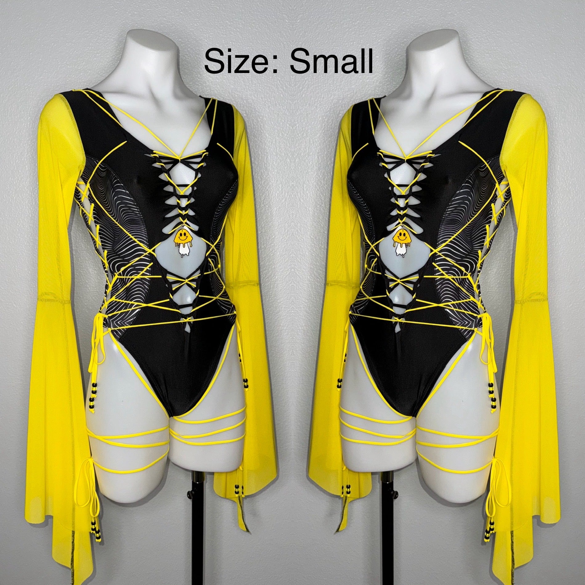 Fabric of bodysuit is one layer of light weight nylon/spandex blend (4-way stretch and breathable) and sleeves are power mesh.