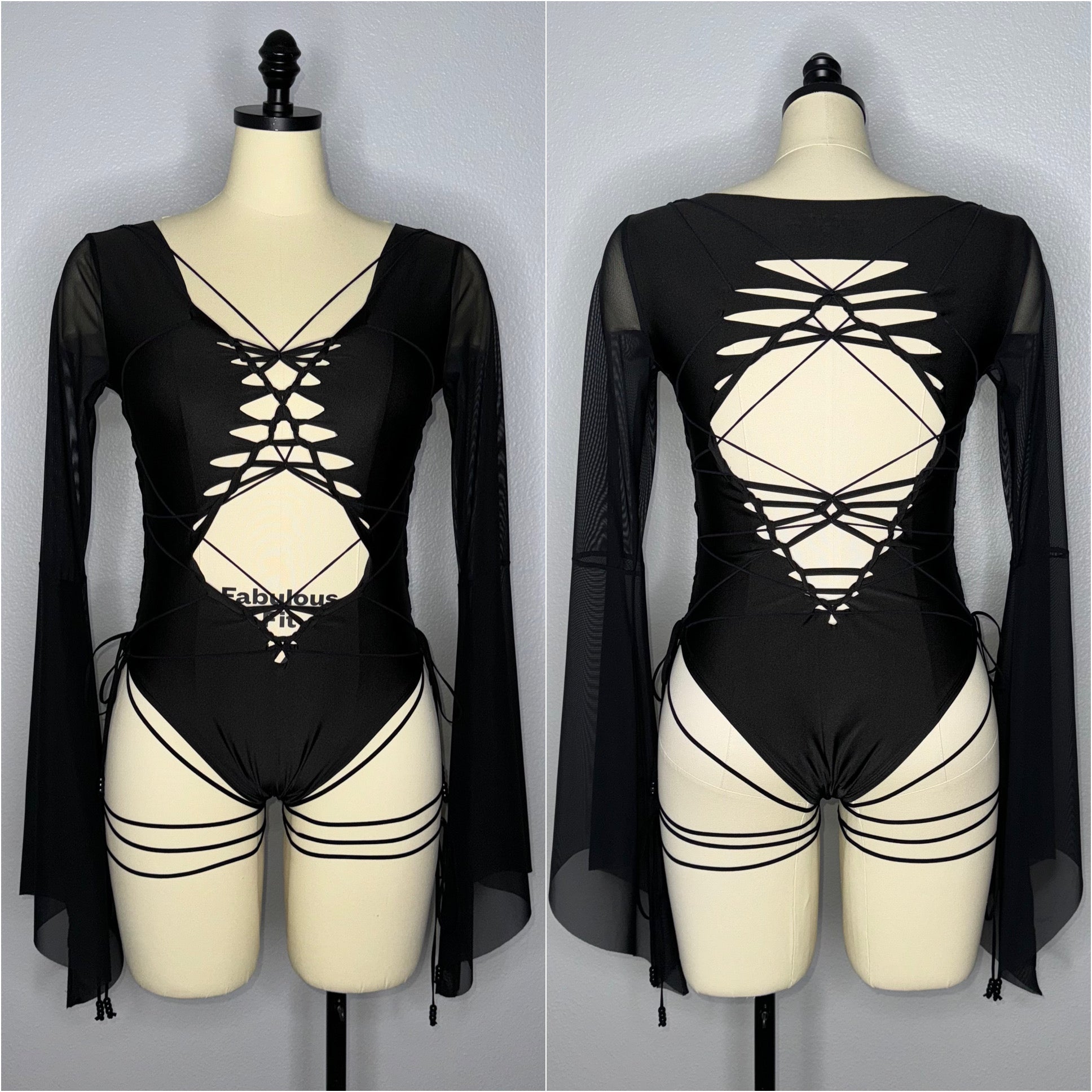 Fabric of bodysuit is one layer of light weight nylon/spandex blend (4-way stretch and breathable) and sleeves are power mesh.