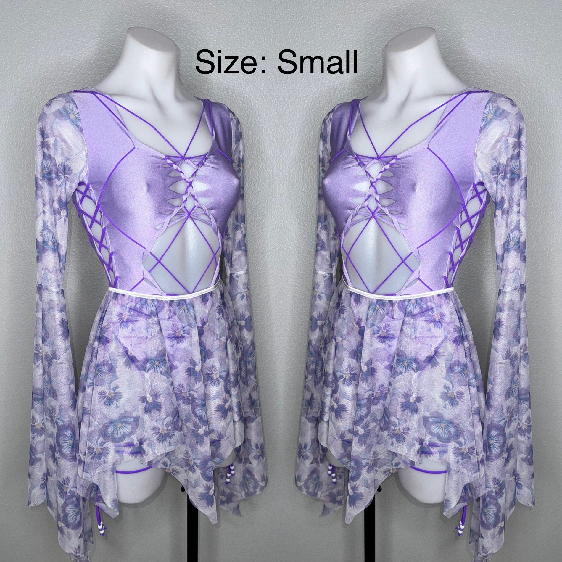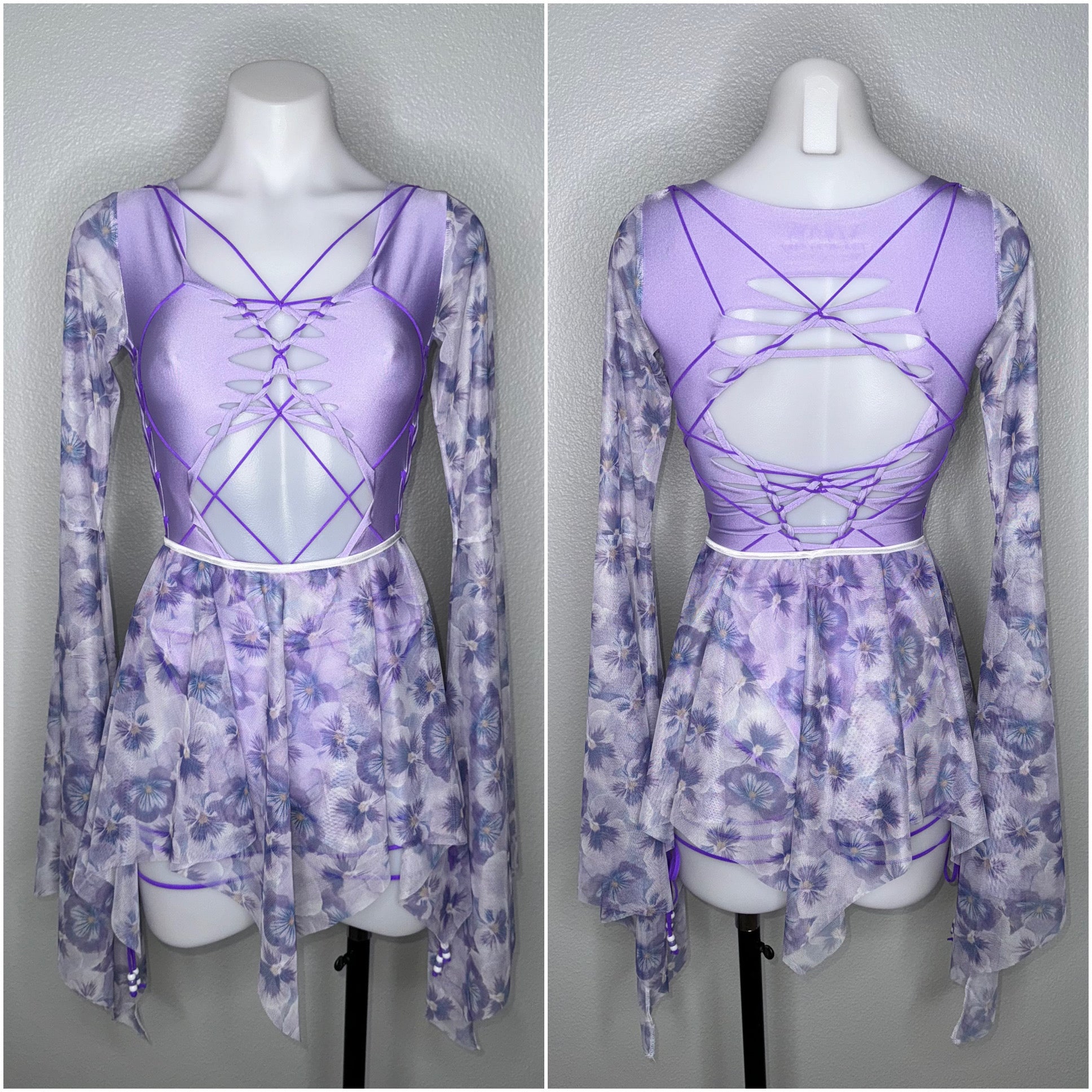 Fabric of bodysuit is one layer of light weight nylon/spandex blend (4-way stretch and breathable) and sleeves are power mesh. This fabric is sheer and comes with matching skirt for extra coverage.