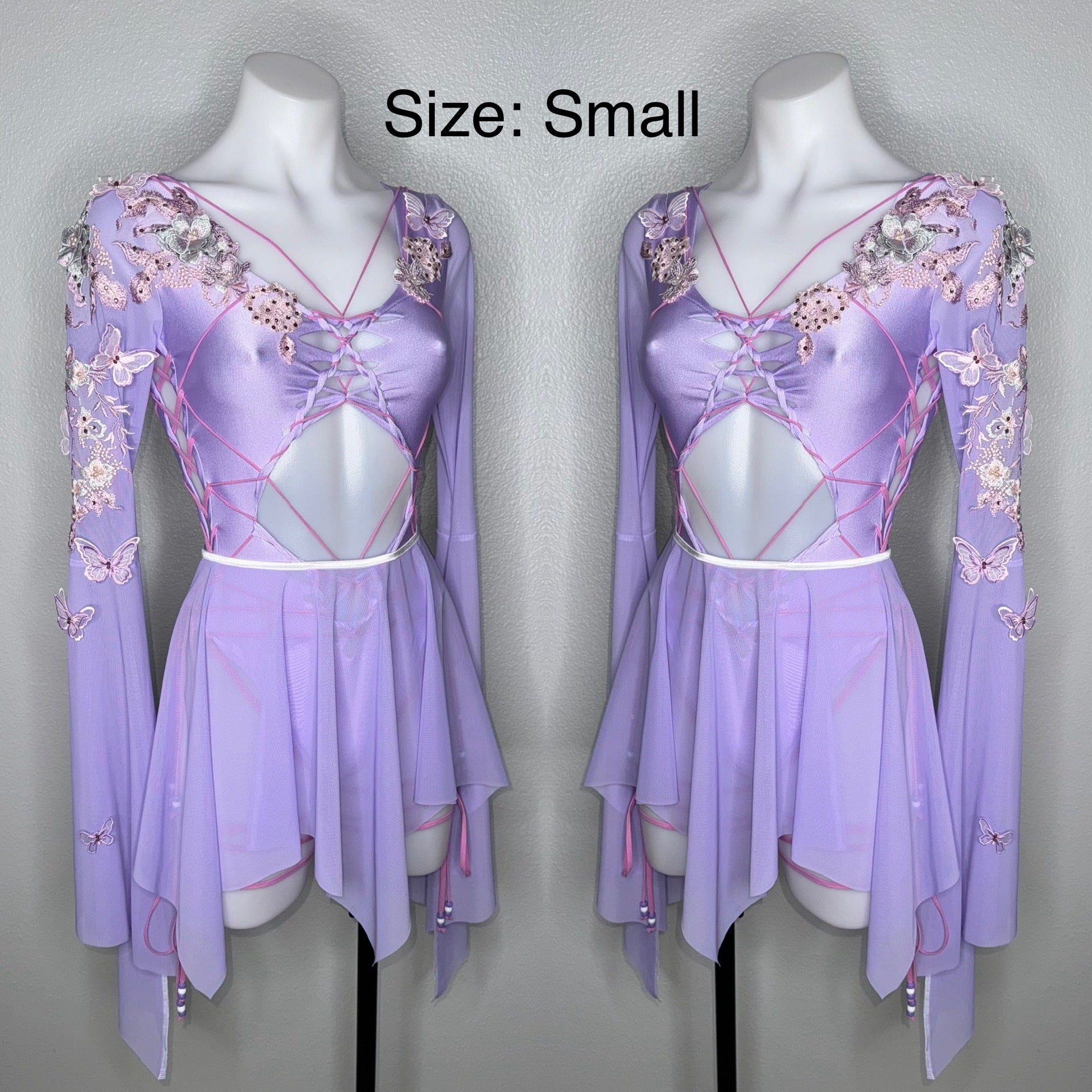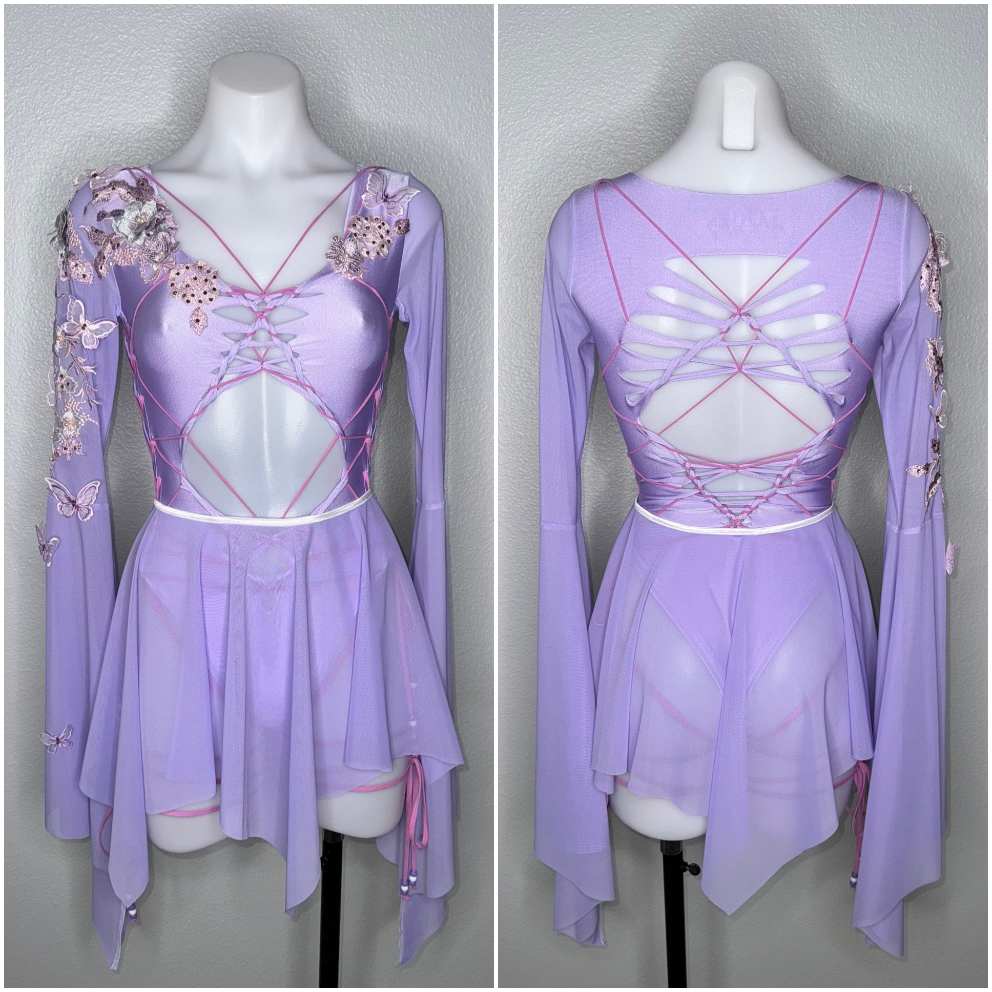 Fabric of bodysuit is one layer of light weight nylon/spandex blend (4-way stretch and breathable) and sleeves are power mesh. This fabric is sheer and comes with matching skirt for extra coverage.