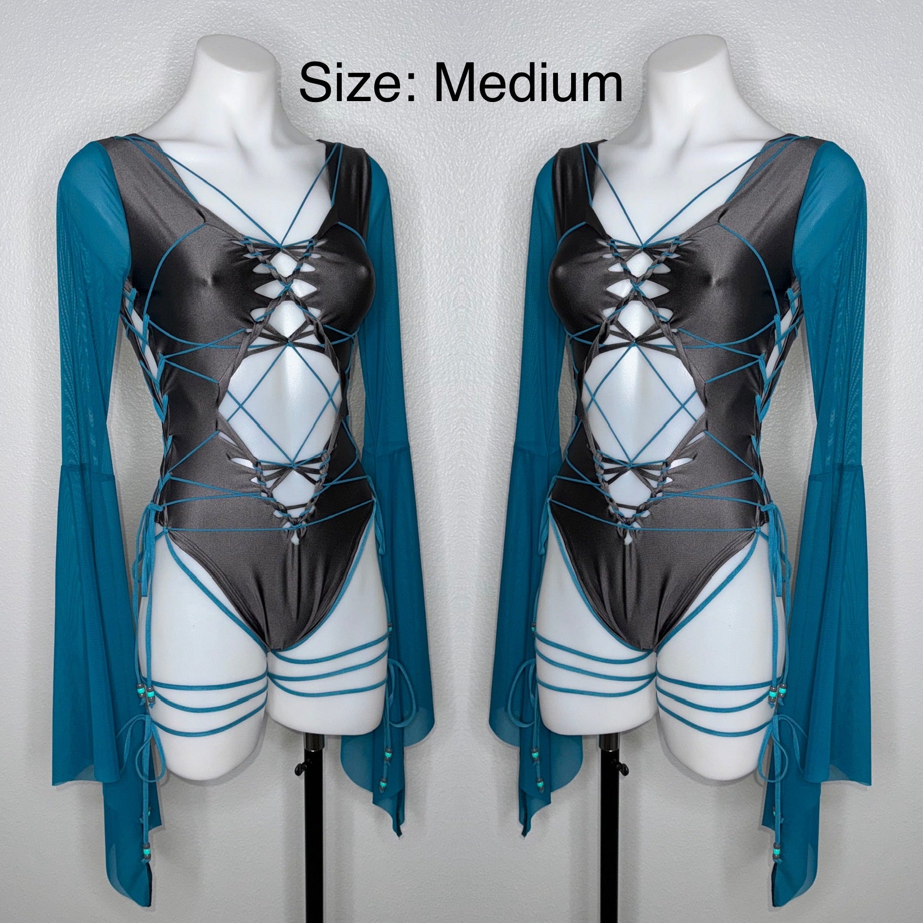Fabric of bodysuit is one layer of light weight nylon/spandex blend (4-way stretch and breathable) and sleeves are power mesh.