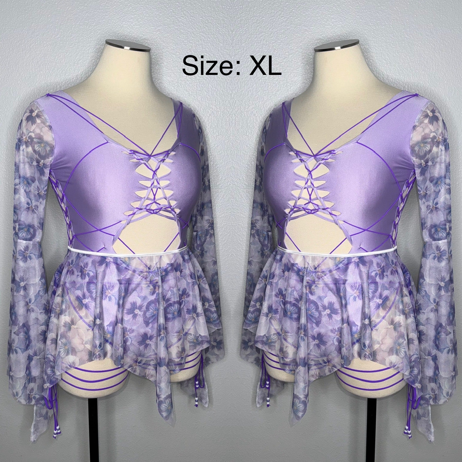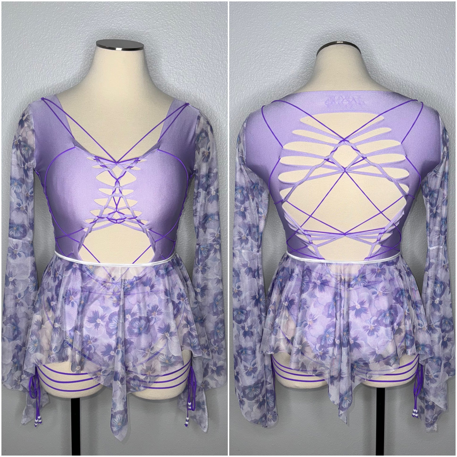 Fabric of bodysuit is one layer of light weight nylon/spandex blend (4-way stretch and breathable) and sleeves are power mesh. This fabric is sheer and comes with matching skirt for extra coverage.