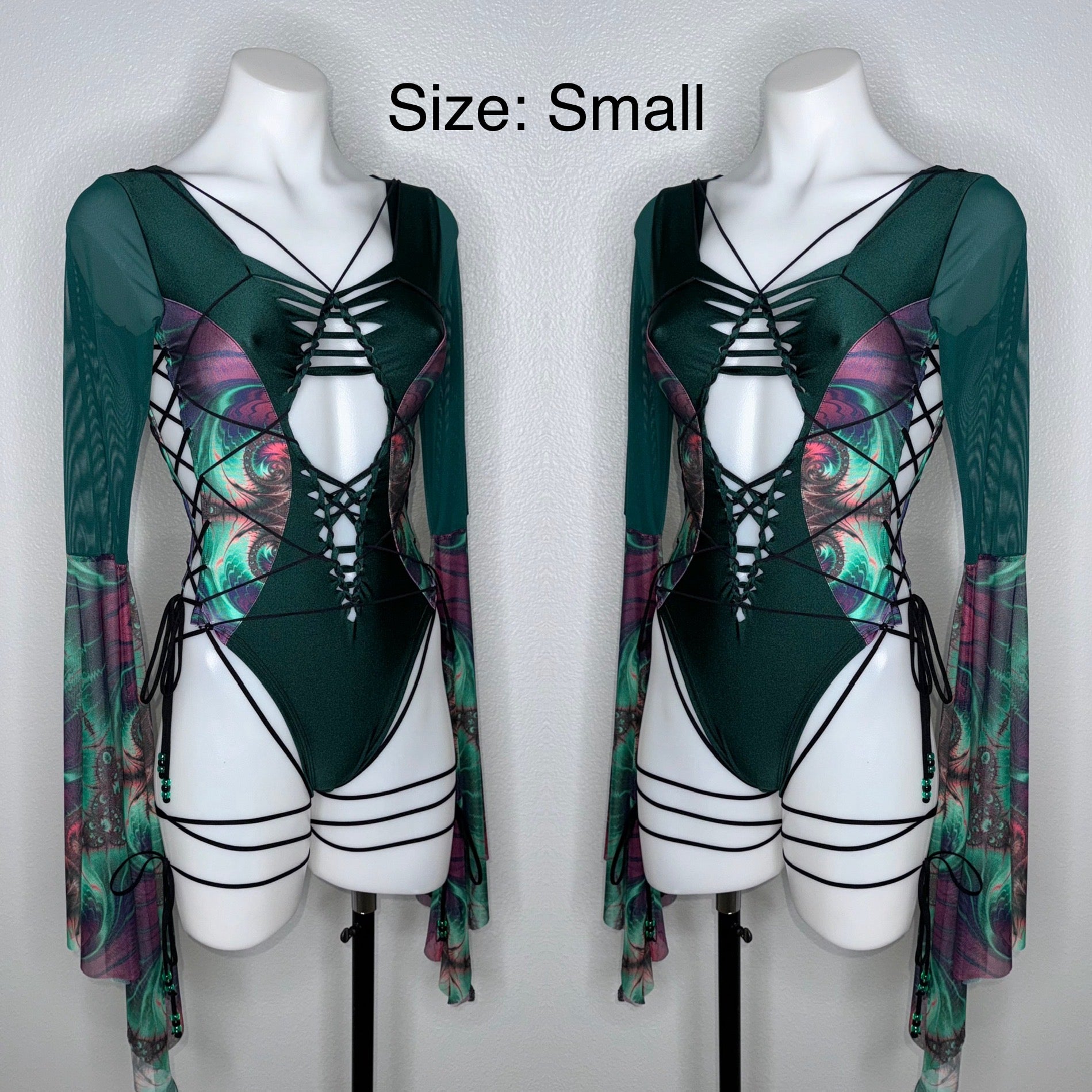 Fabric of bodysuit is one layer of light weight nylon/spandex blend (4-way stretch and breathable) and sleeves are power mesh.