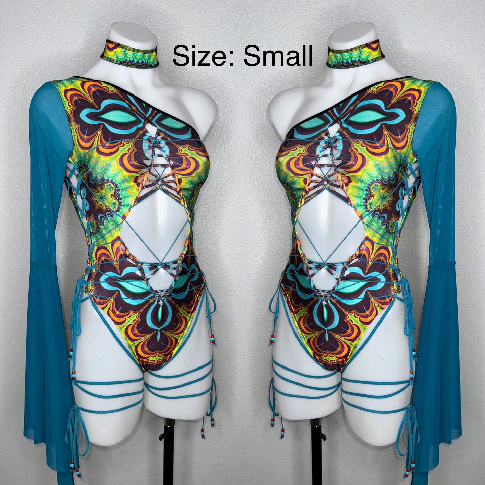 Fabric of bodysuit is one layer of light weight nylon/spandex blend (4-way stretch and breathable) and sleeves are power mesh.
