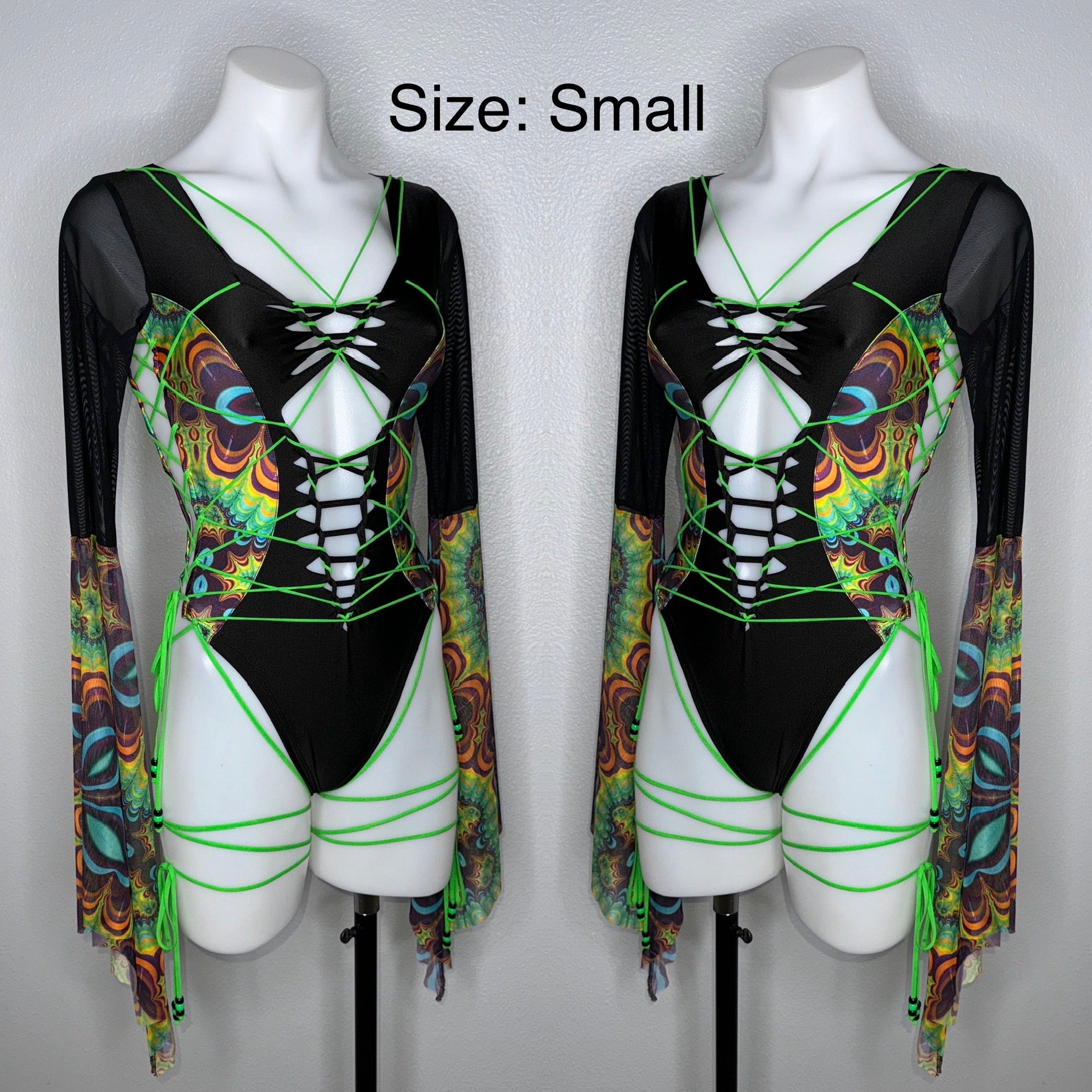 Fabric of bodysuit is one layer of light weight nylon/spandex blend (4-way stretch and breathable) and sleeves are power mesh.