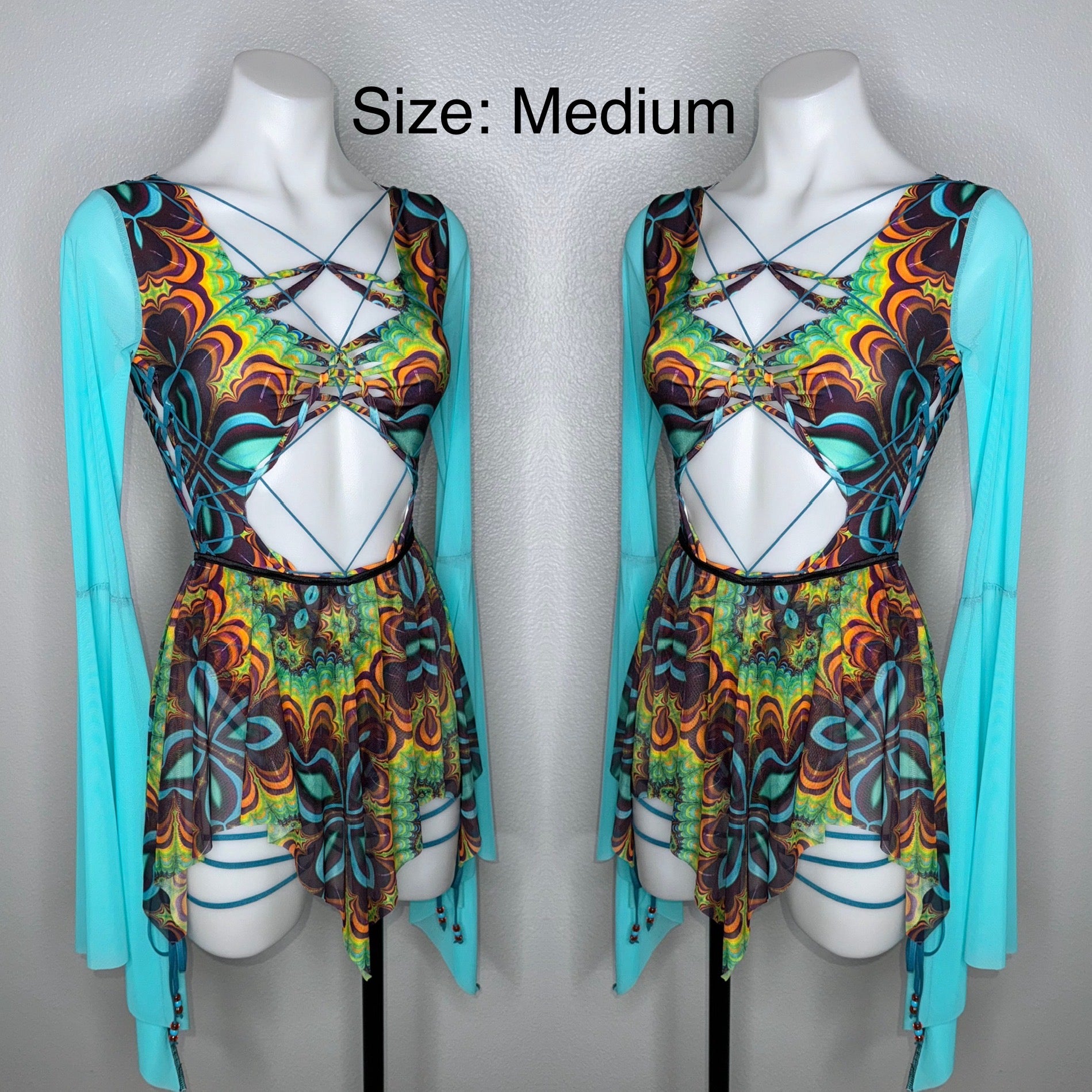 Fabric of bodysuit is one layer of light weight nylon/spandex blend (4-way stretch and breathable) and sleeves are power mesh.
