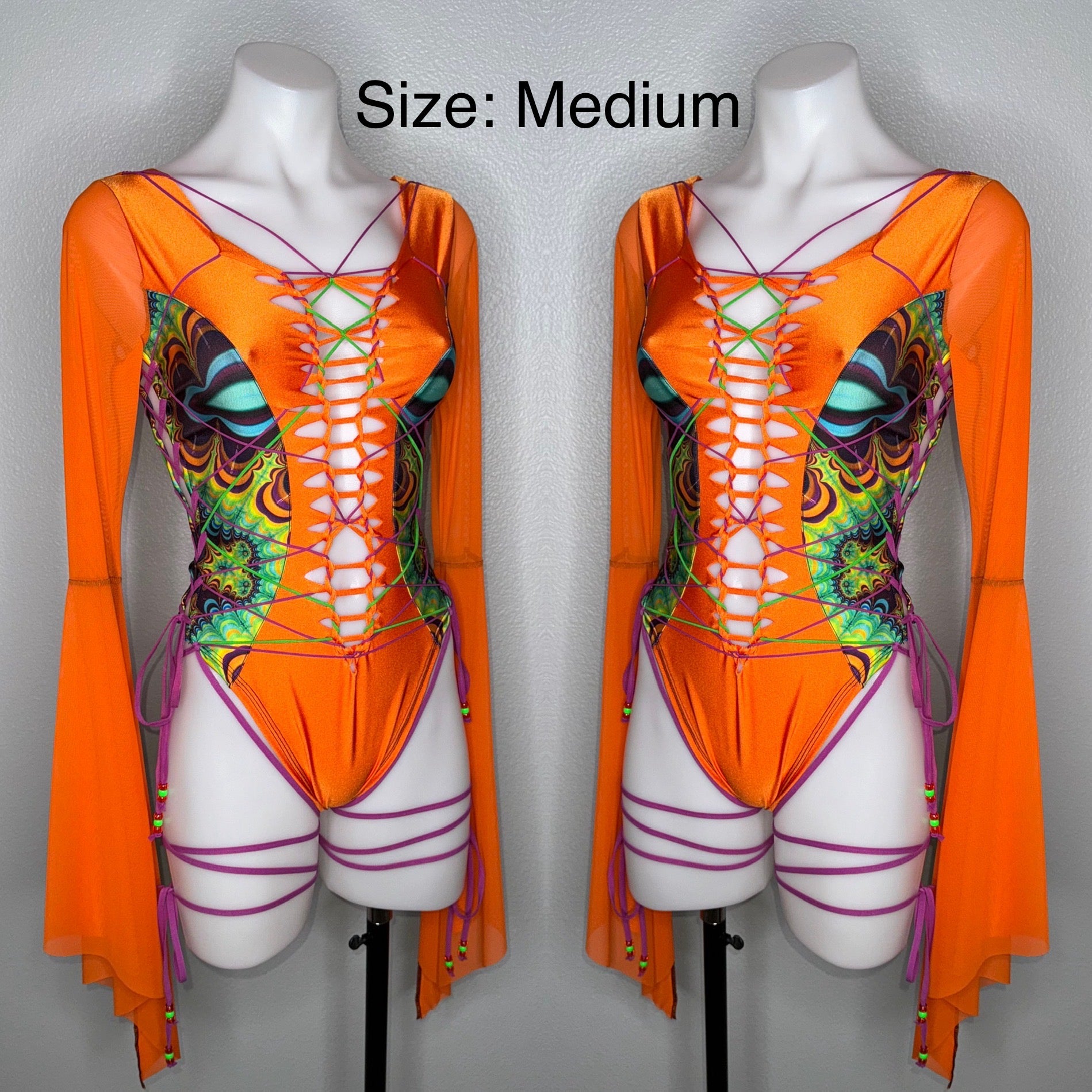 Fabric of bodysuit is one layer of light weight nylon/spandex blend (4-way stretch and breathable) and sleeves are power mesh.
