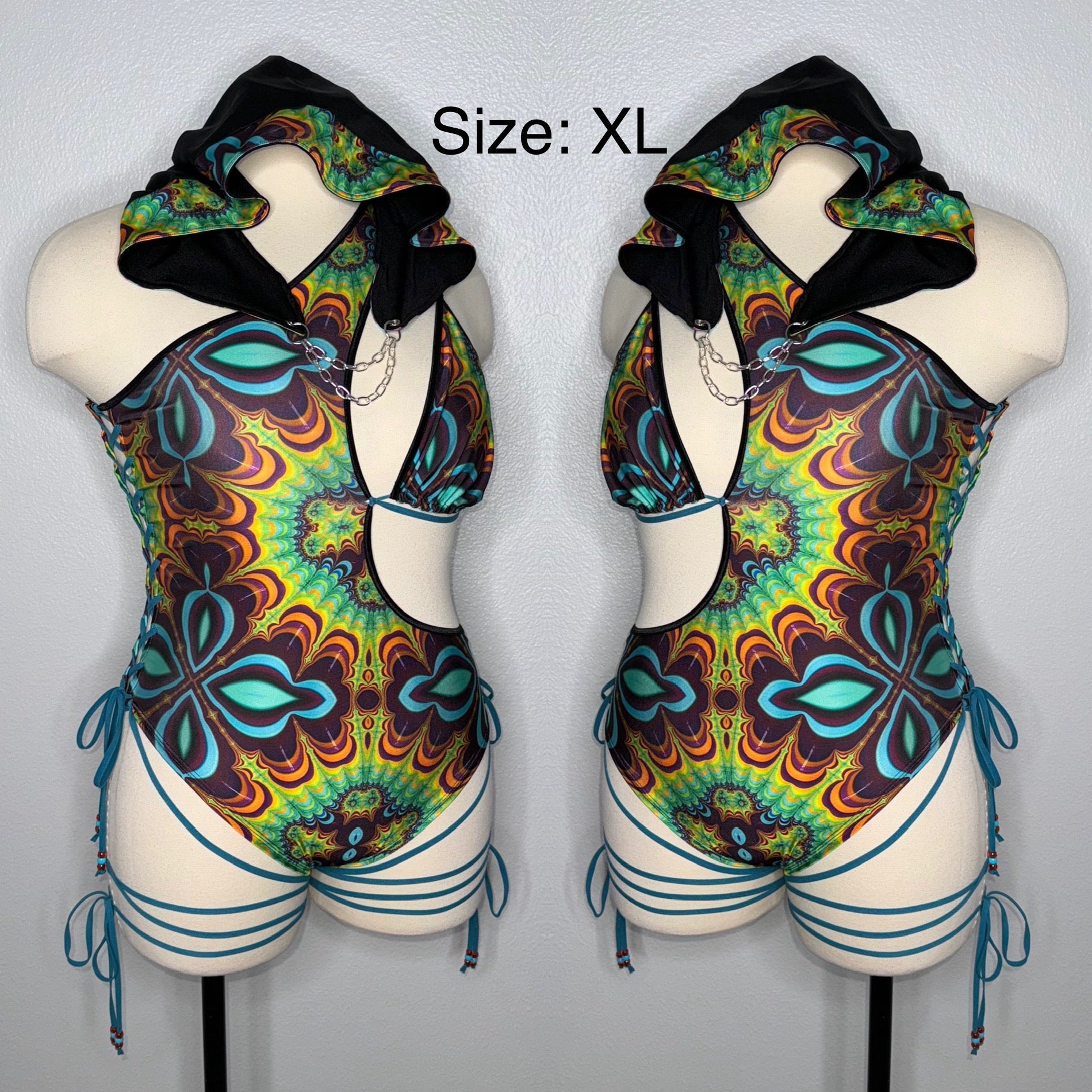Fabric of bodysuit is one layer of light weight nylon/spandex blend (4-way stretch and breathable).