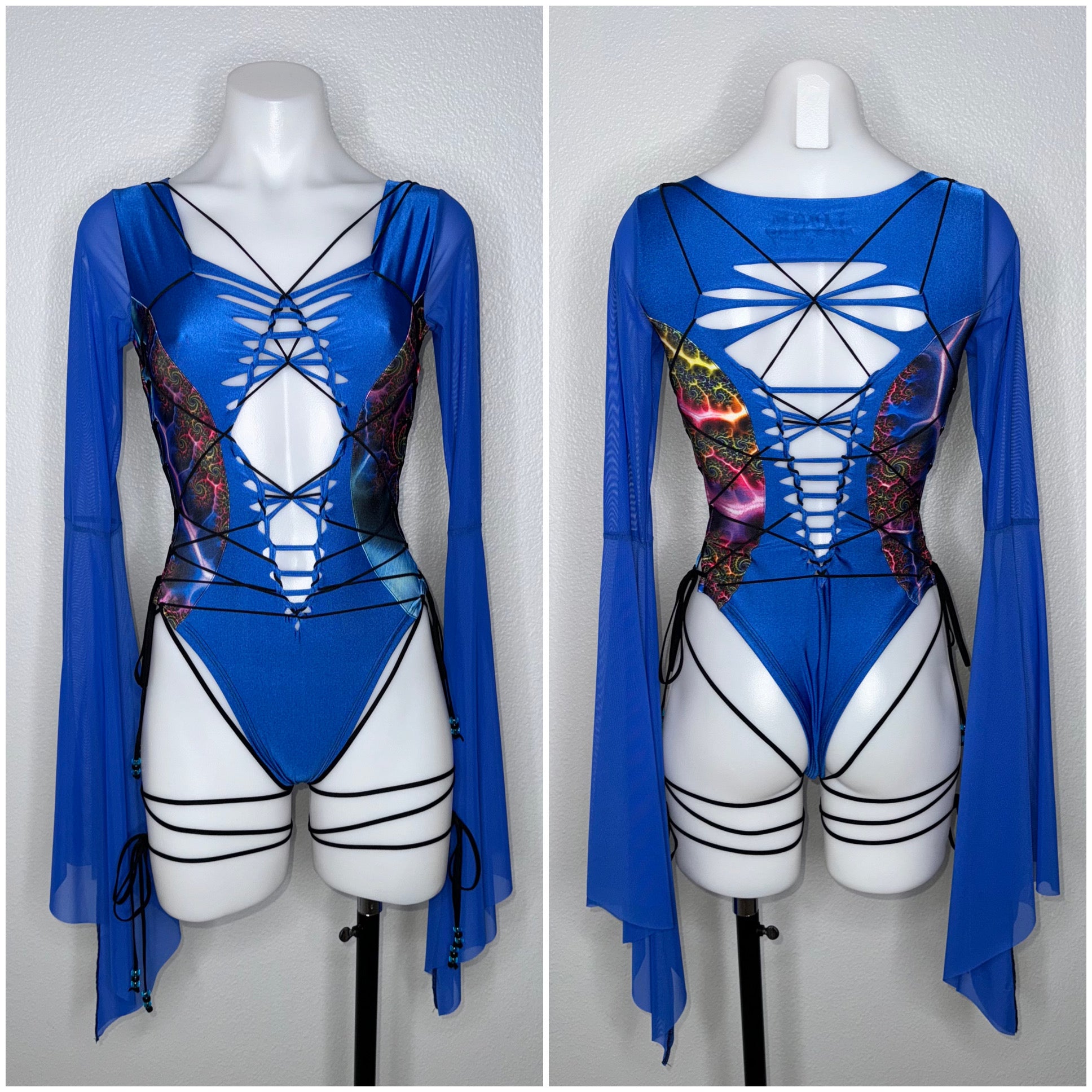 Fabric of bodysuit is one layer of light weight nylon/spandex blend (4-way stretch and breathable) and sleeves are power mesh.