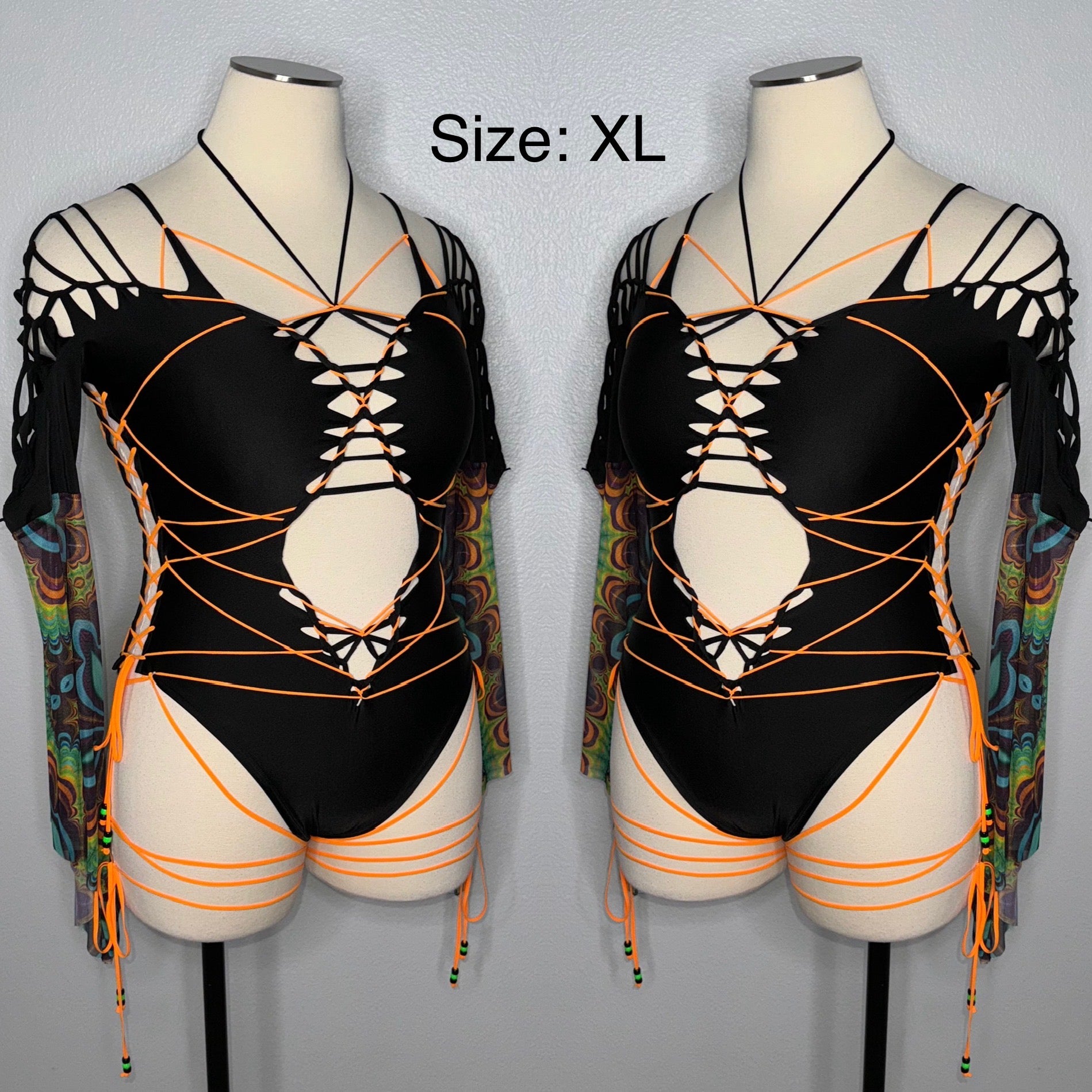 Fabric of bodysuit is one layer of light weight nylon/spandex blend (4-way stretch and breathable) and sleeves are power mesh.