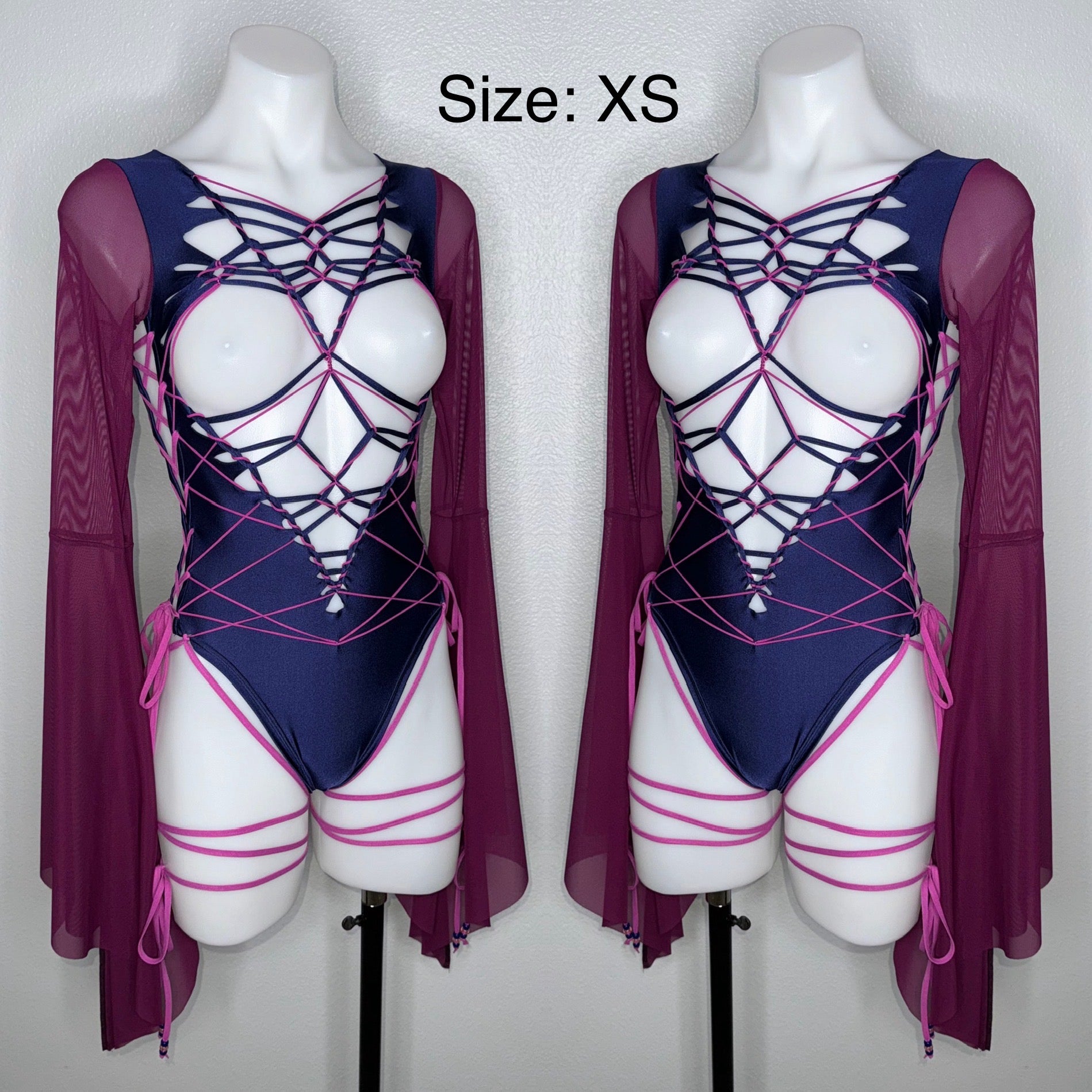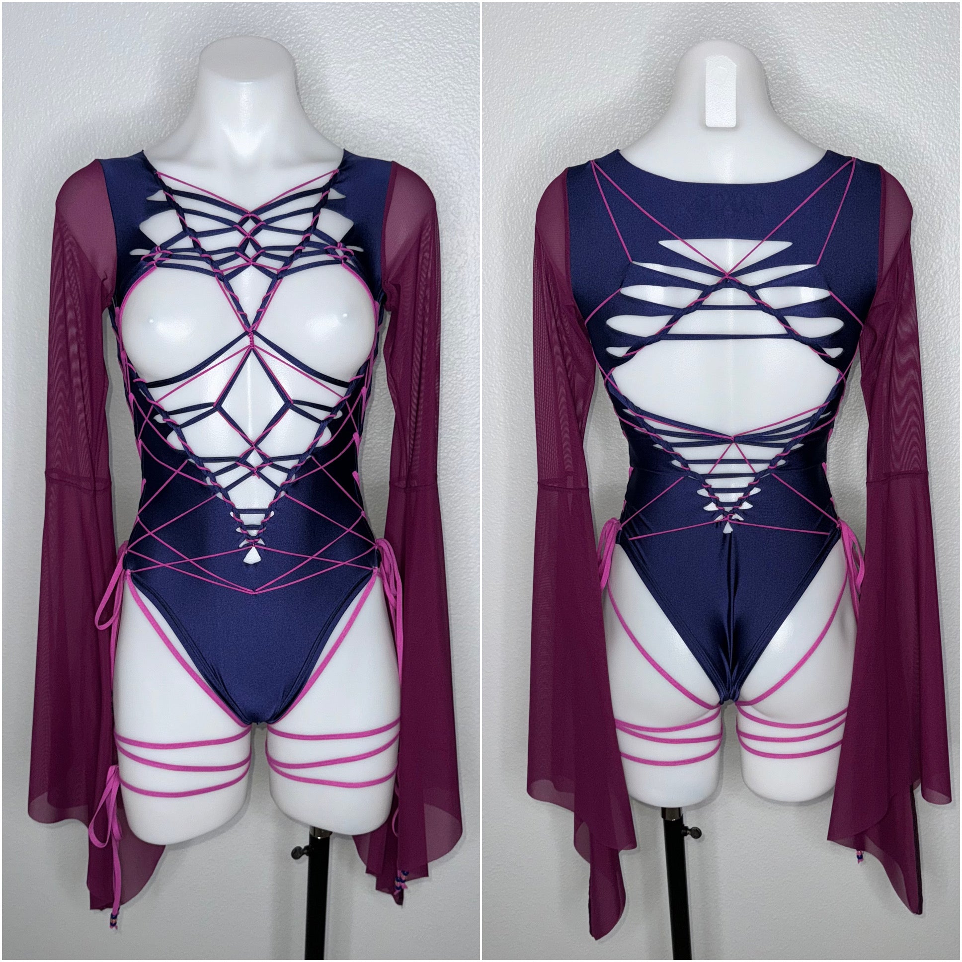 Fabric of bodysuit is one layer of light weight nylon/spandex blend (4-way stretch and breathable) and sleeves are power mesh.