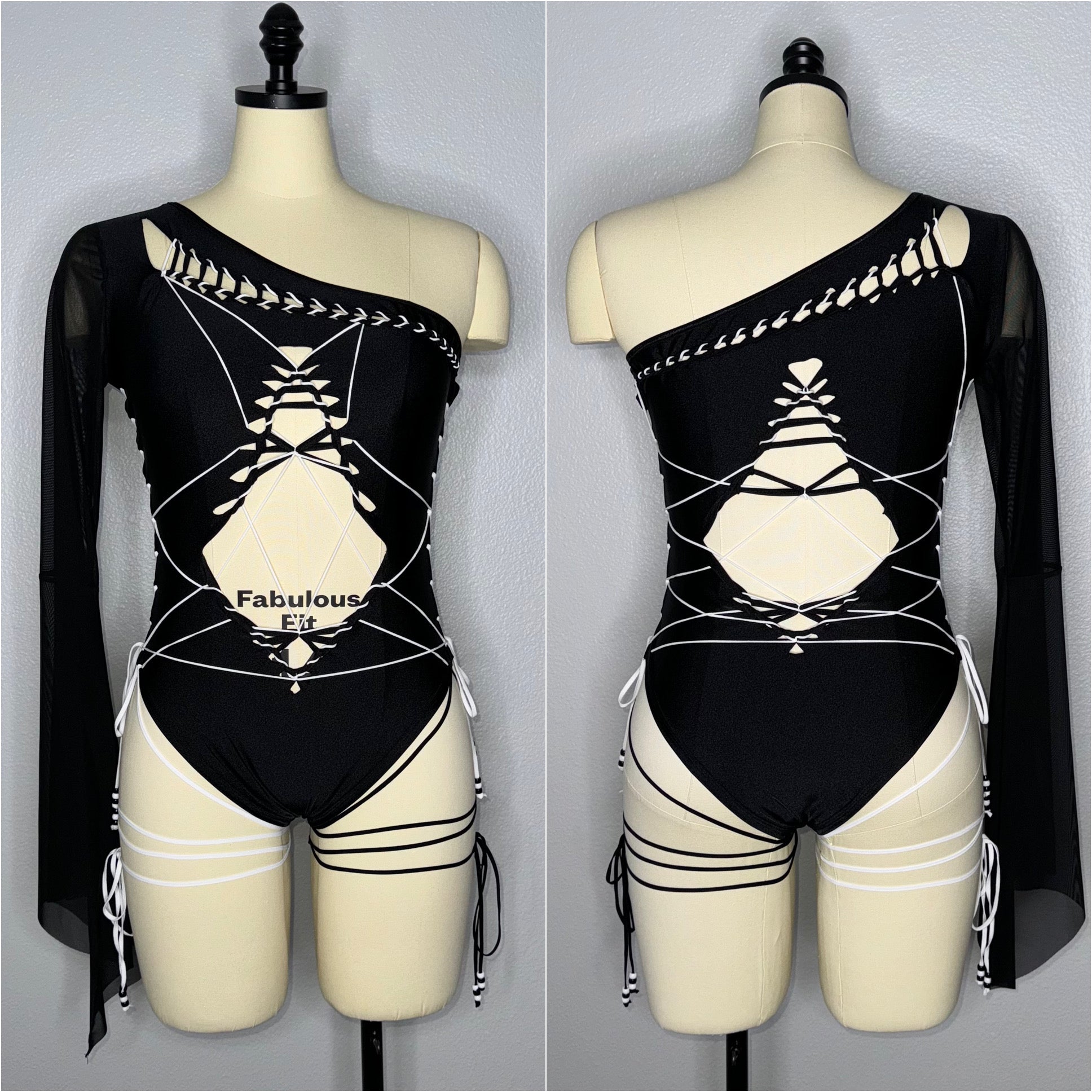 Fabric of bodysuit is one layer of light weight nylon/spandex blend (4-way stretch and breathable) and sleeves are power mesh.