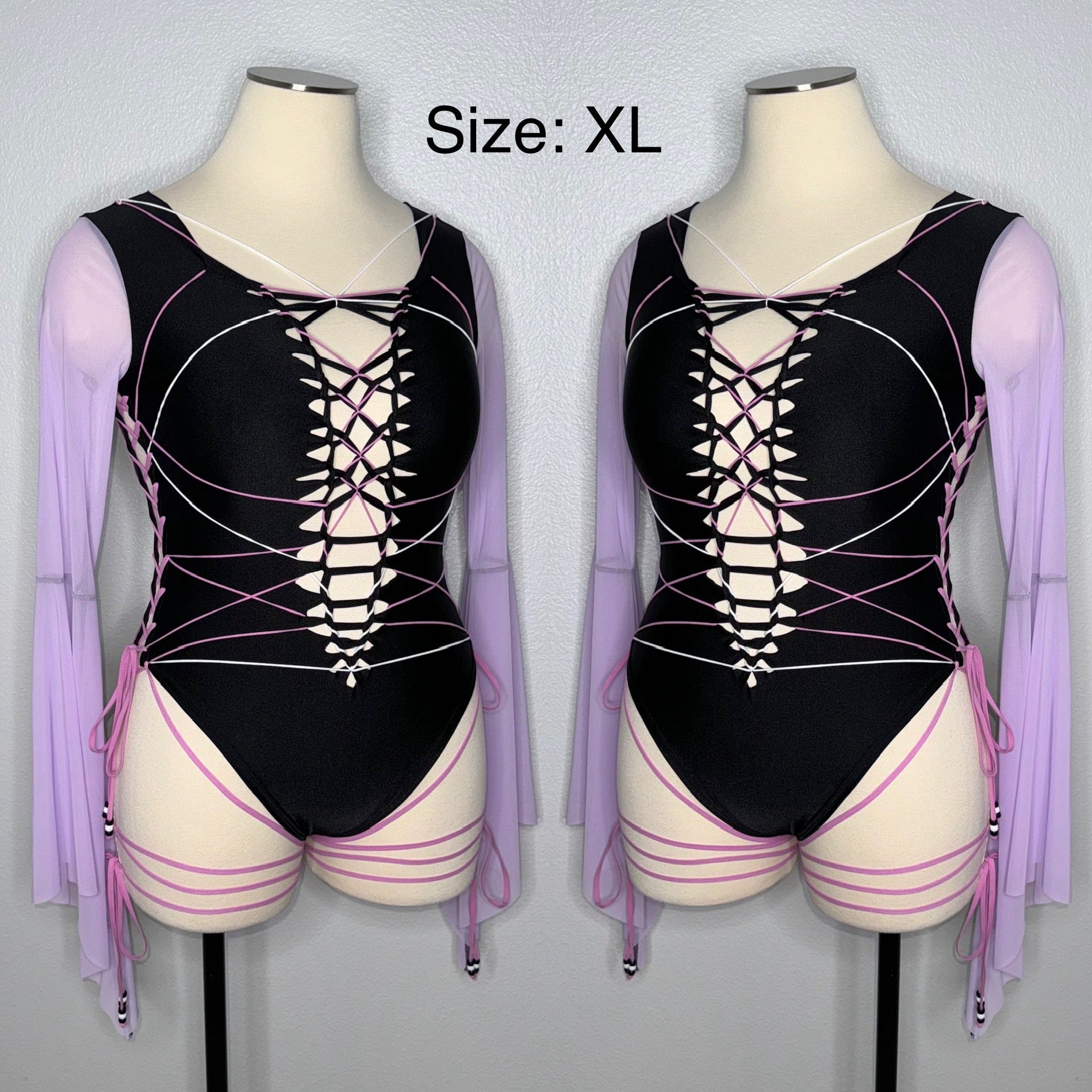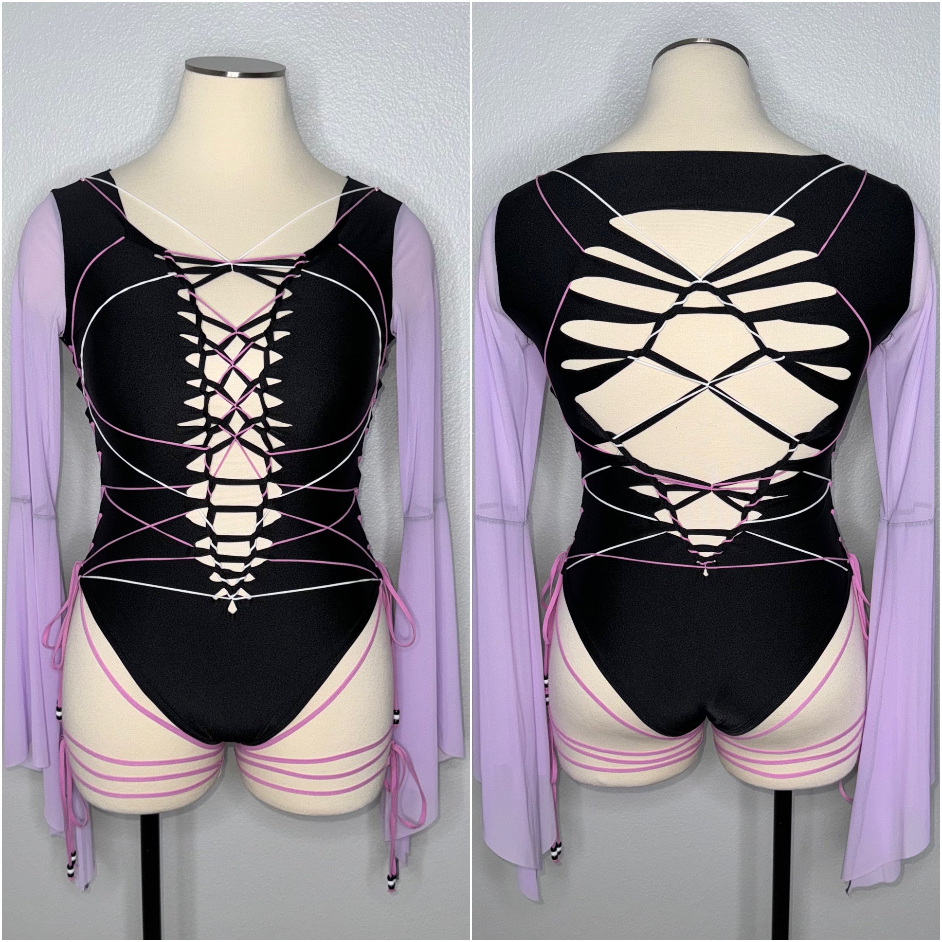 Fabric of bodysuit is one layer of light weight nylon/spandex blend (4-way stretch and breathable) and sleeves are power mesh.