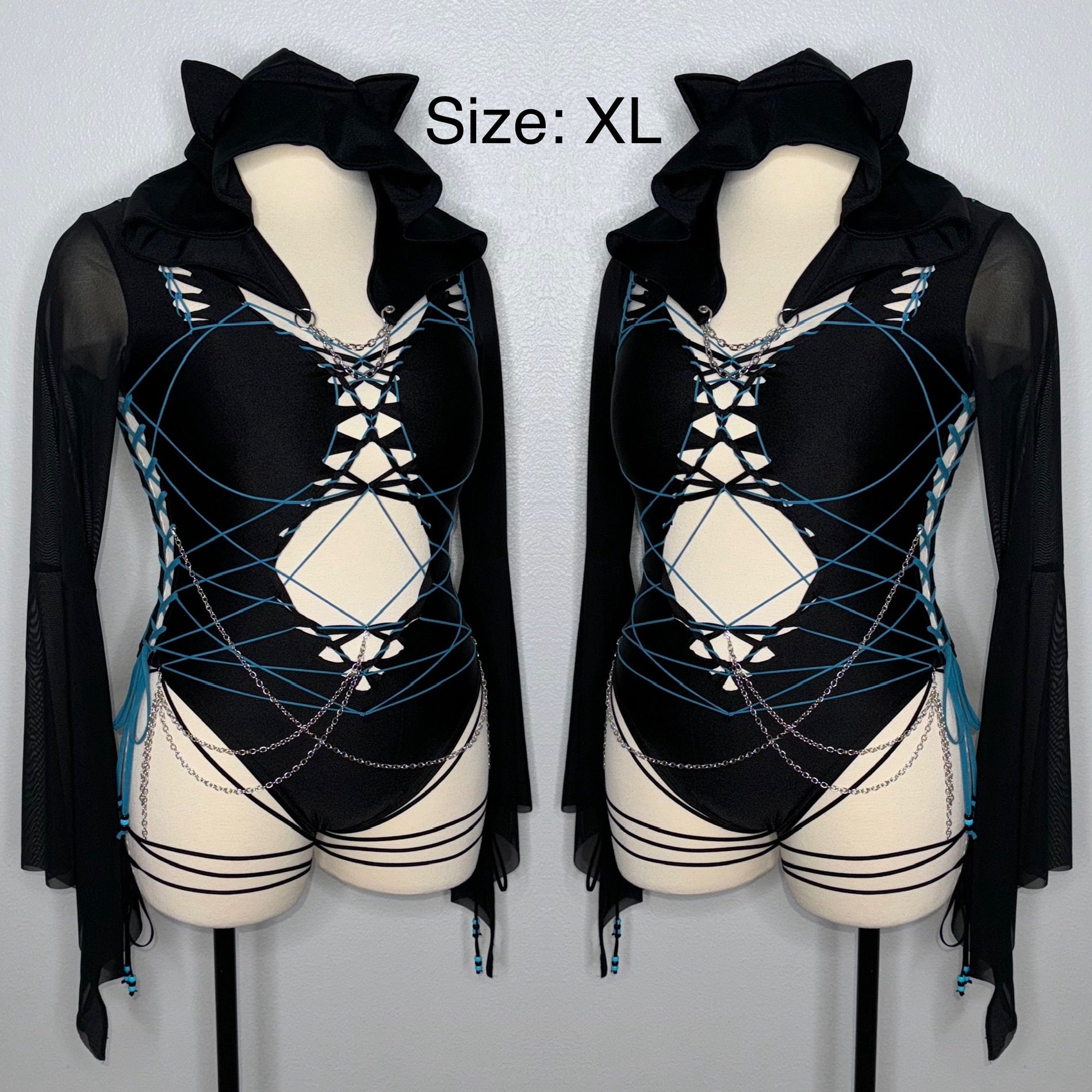 Fabric of bodysuit is one layer of light weight nylon/spandex blend (4-way stretch and breathable) and sleeves are power mesh.