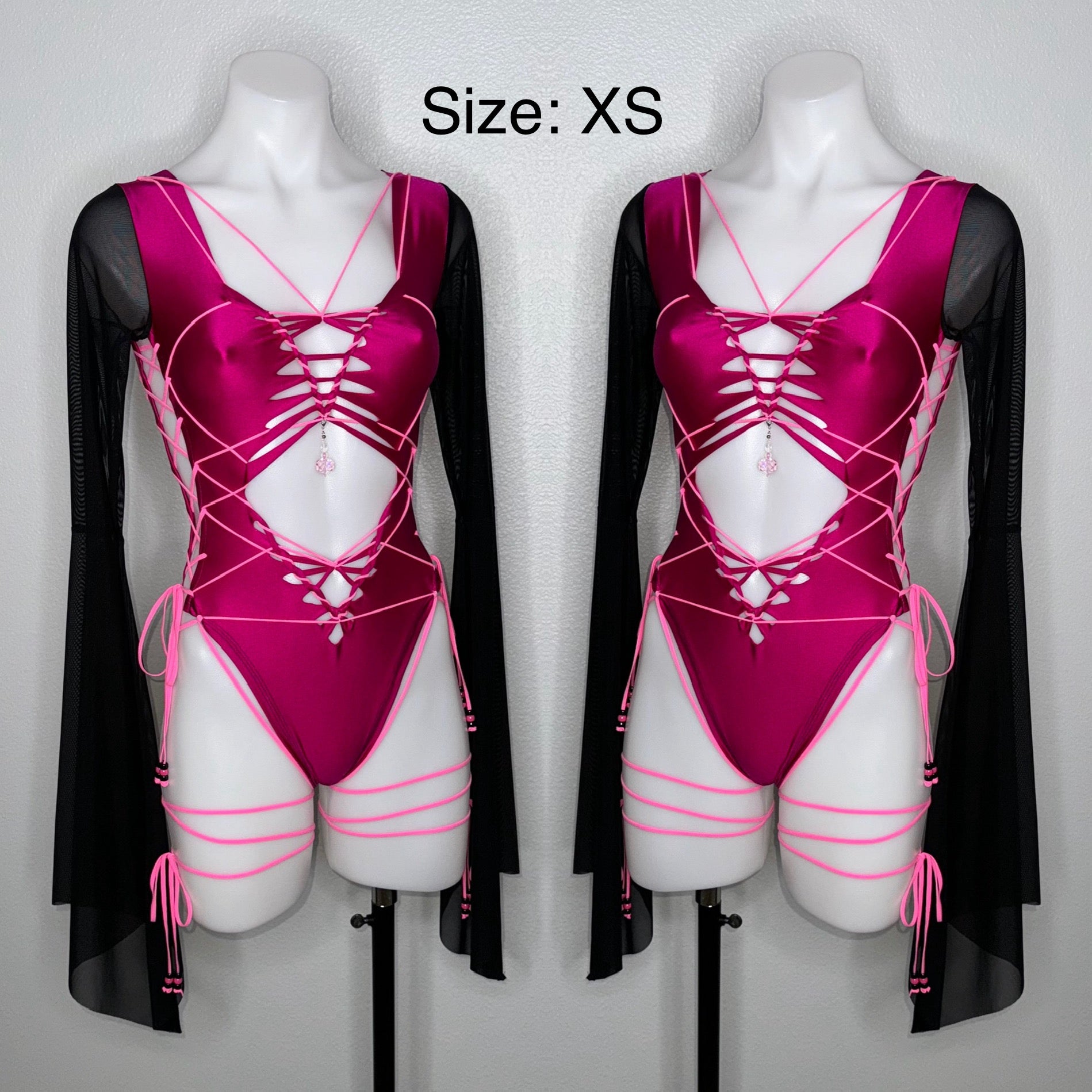 Fabric of bodysuit is one layer of light weight nylon/spandex blend (4-way stretch and breathable) and sleeves are power mesh.