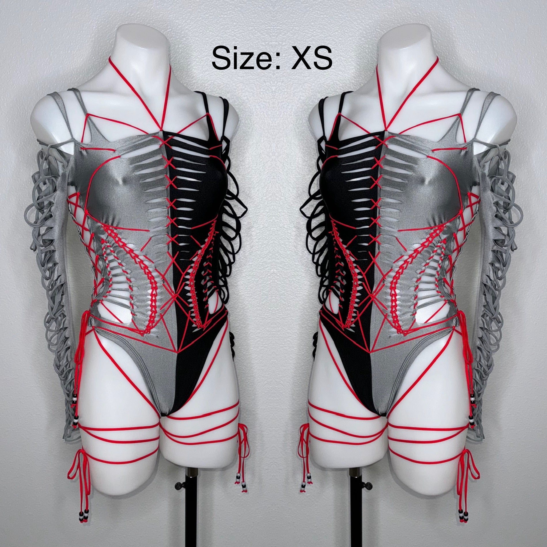 Fabric of bodysuit is one layer of light weight nylon/spandex blend (4-way stretch and breathable) and sleeves are power mesh.