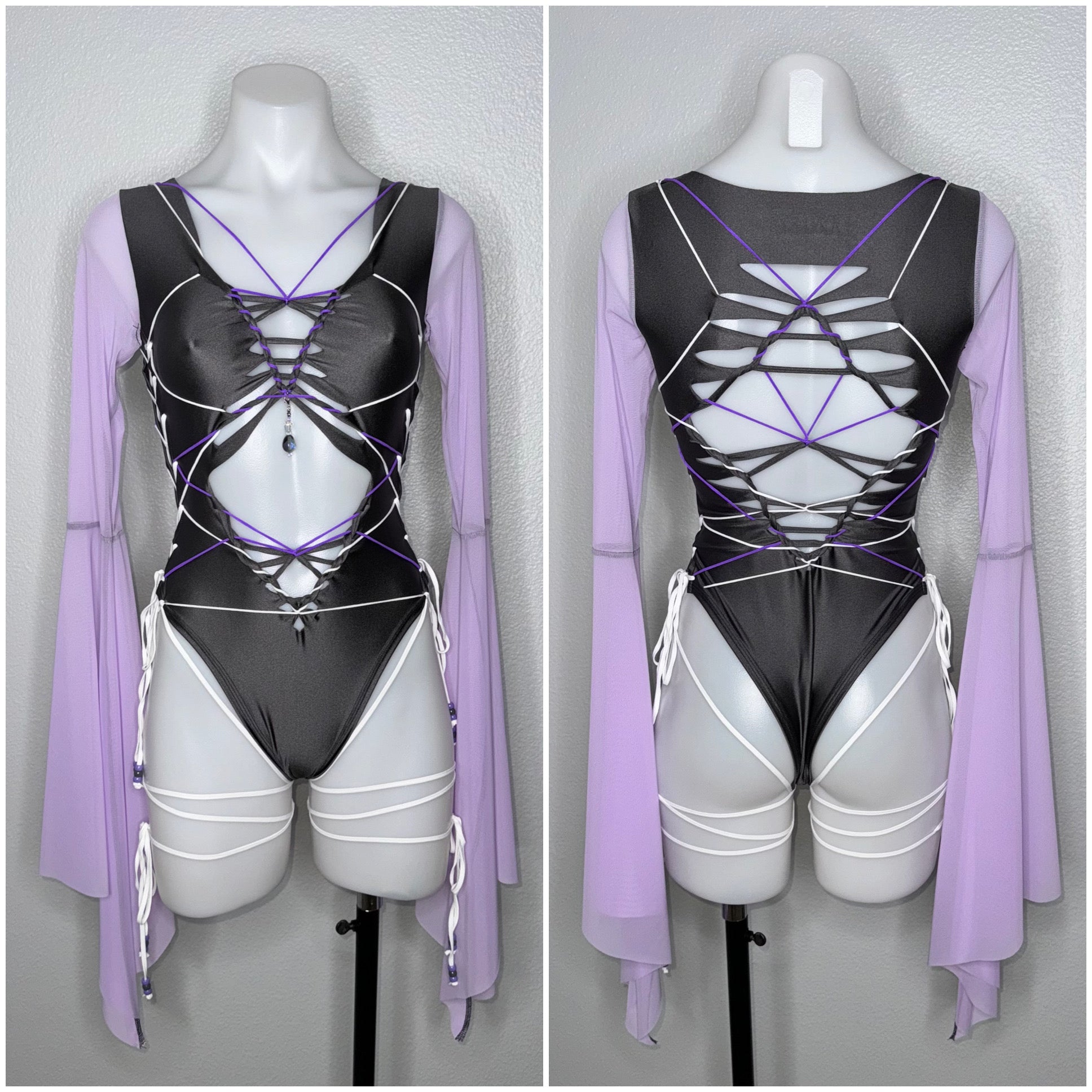 Fabric of bodysuit is one layer of light weight nylon/spandex blend (4-way stretch and breathable) and sleeves are power mesh.