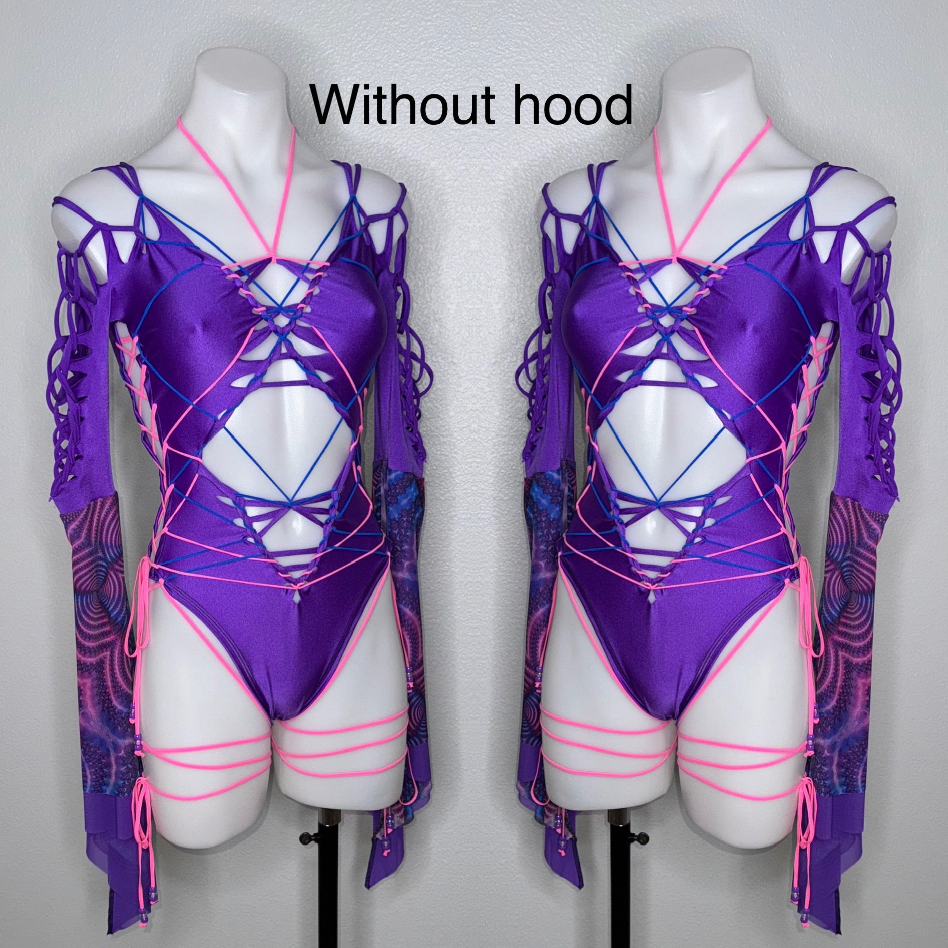 Fabric of bodysuit is one layer of light weight nylon/spandex blend (4-way stretch and breathable) and sleeves are power mesh.