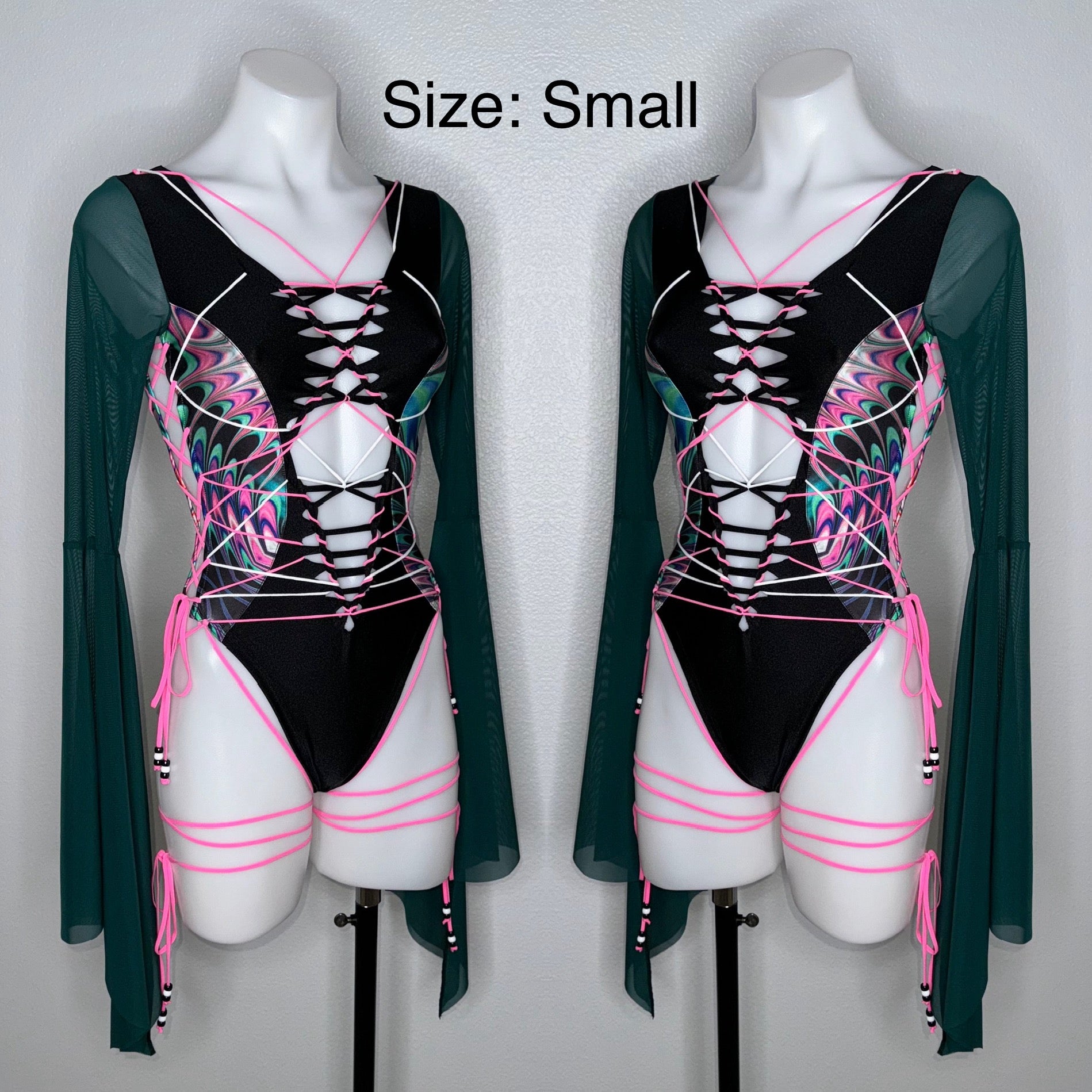 Fabric of bodysuit is one layer of light weight nylon/spandex blend (4-way stretch and breathable) and sleeves are power mesh.