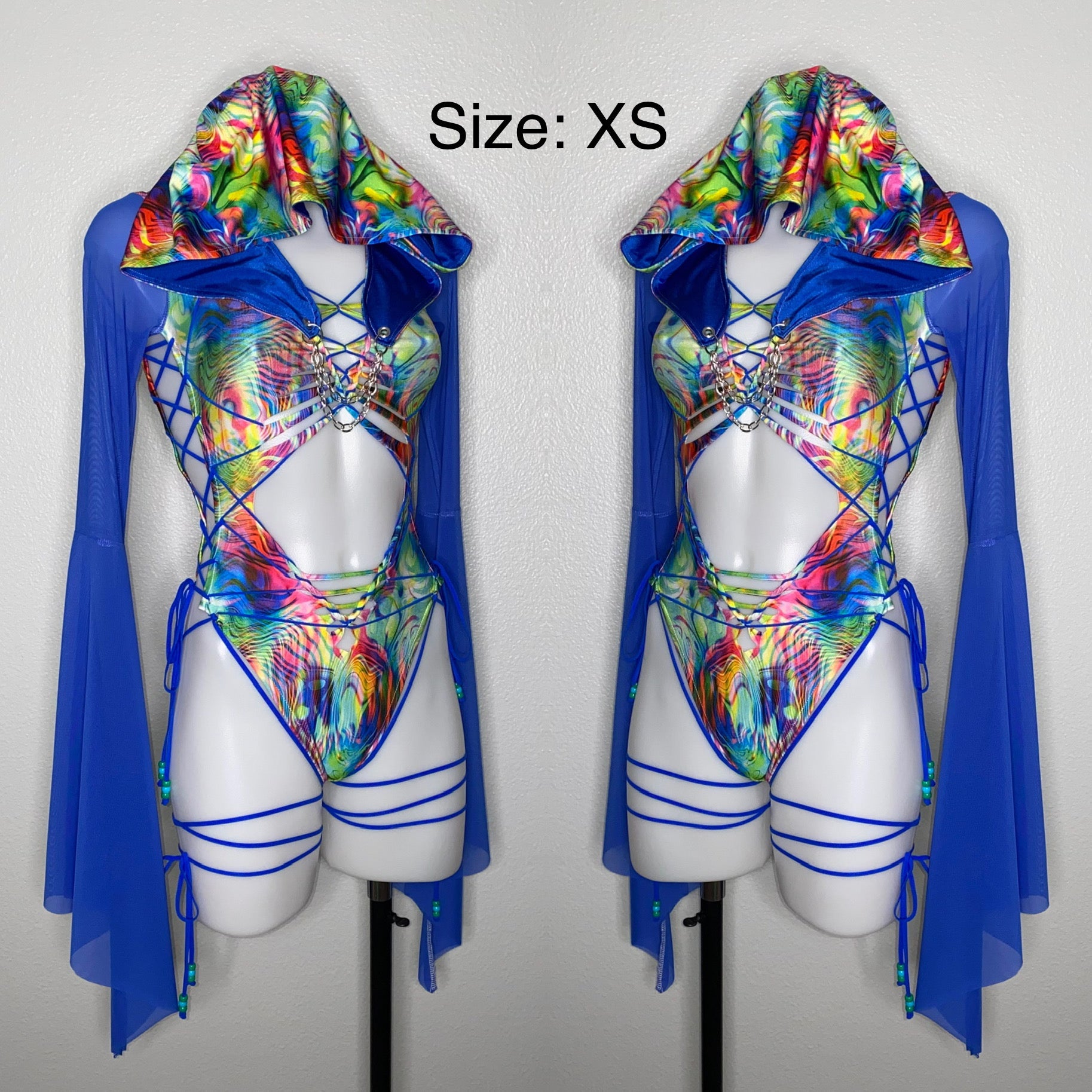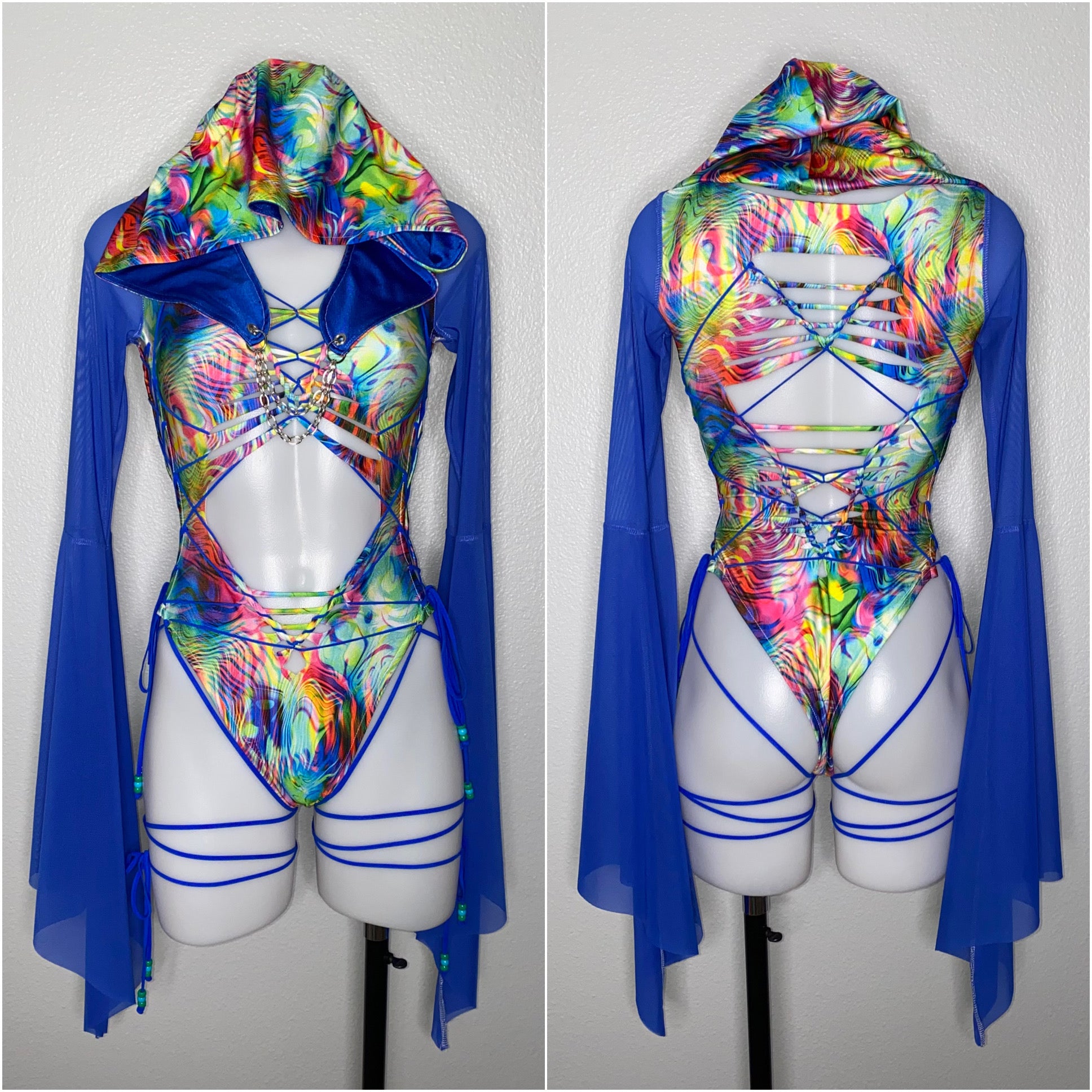 Fabric of bodysuit is one layer of light weight nylon/spandex blend (4-way stretch and breathable) and sleeves are power mesh.