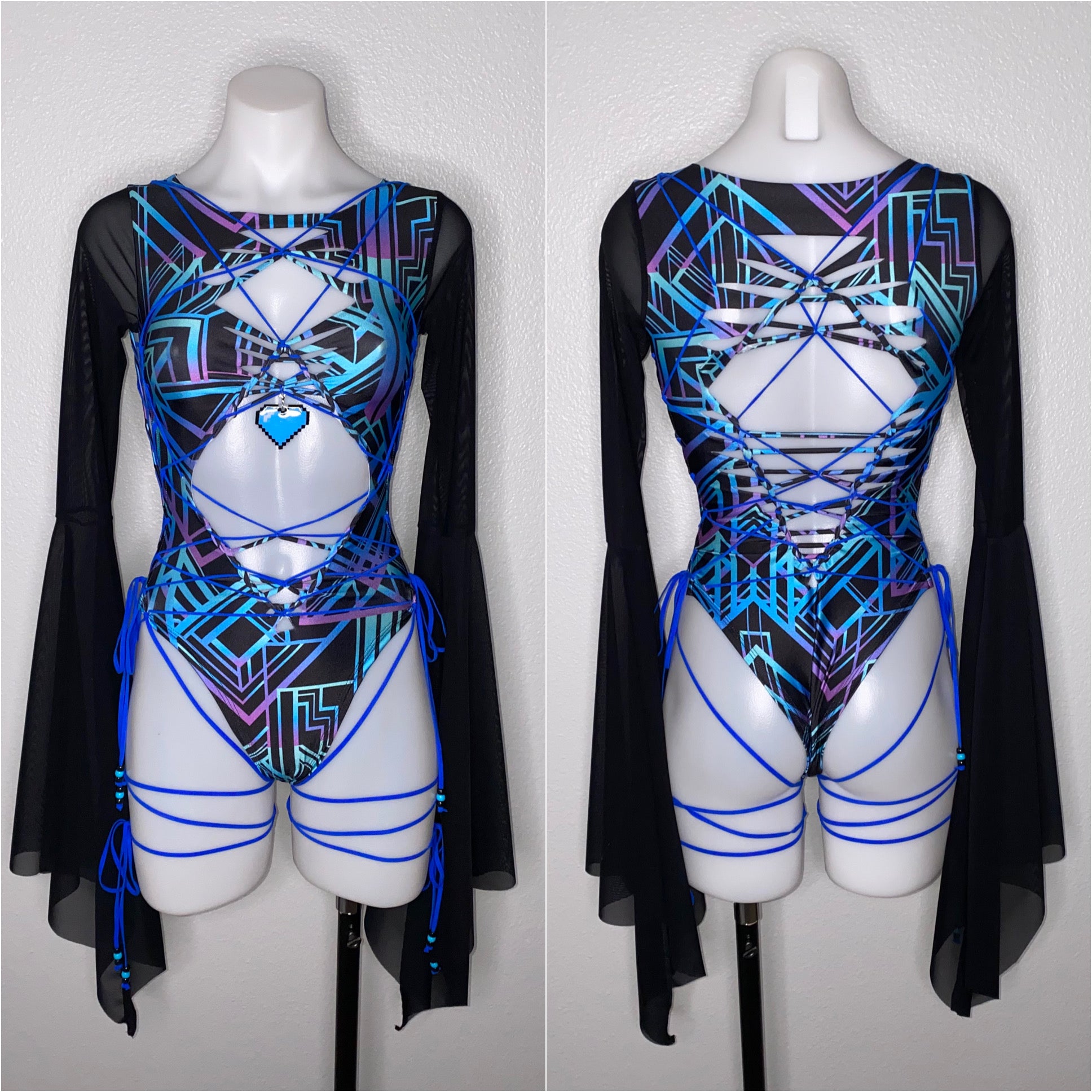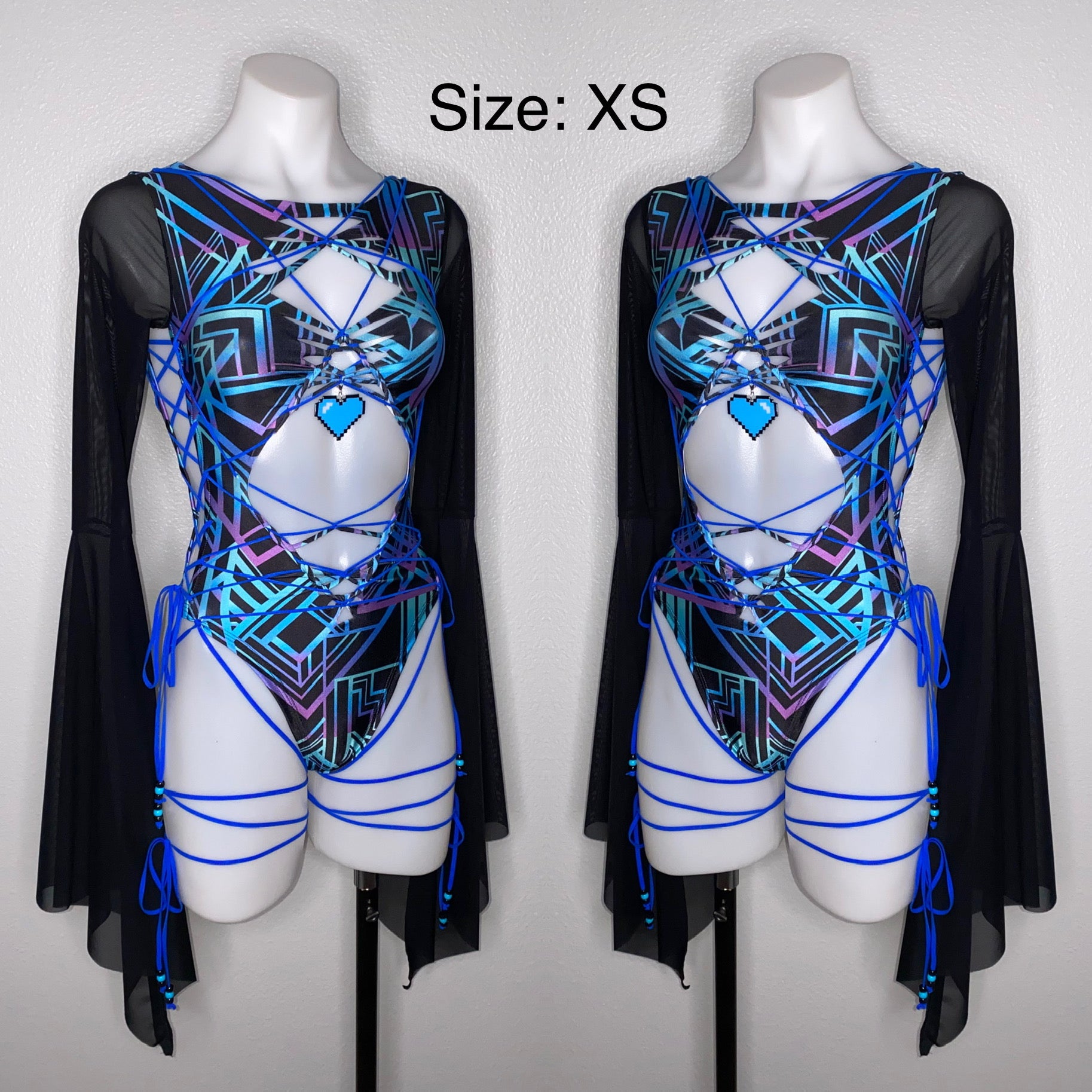 Fabric of bodysuit is one layer of light weight nylon/spandex blend (4-way stretch and breathable) and sleeves are power mesh. Comes with removable TinyHandsCult charm