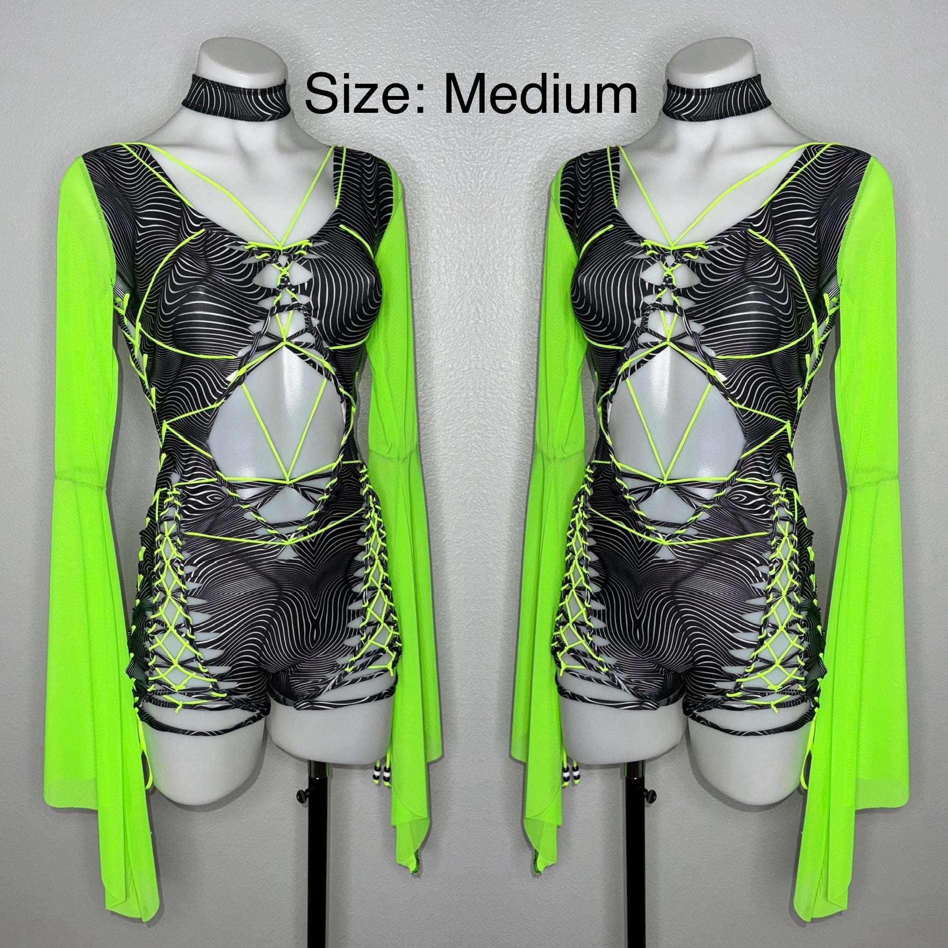 Fabric of playsuit is one layer of light weight nylon/spandex blend (4-way stretch and breathable) and sleeves are power mesh.