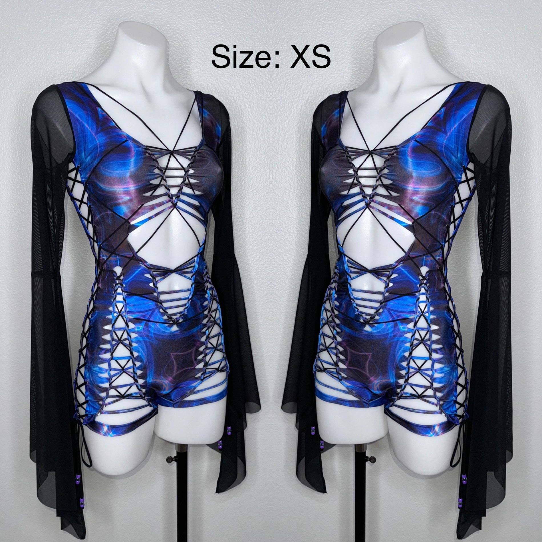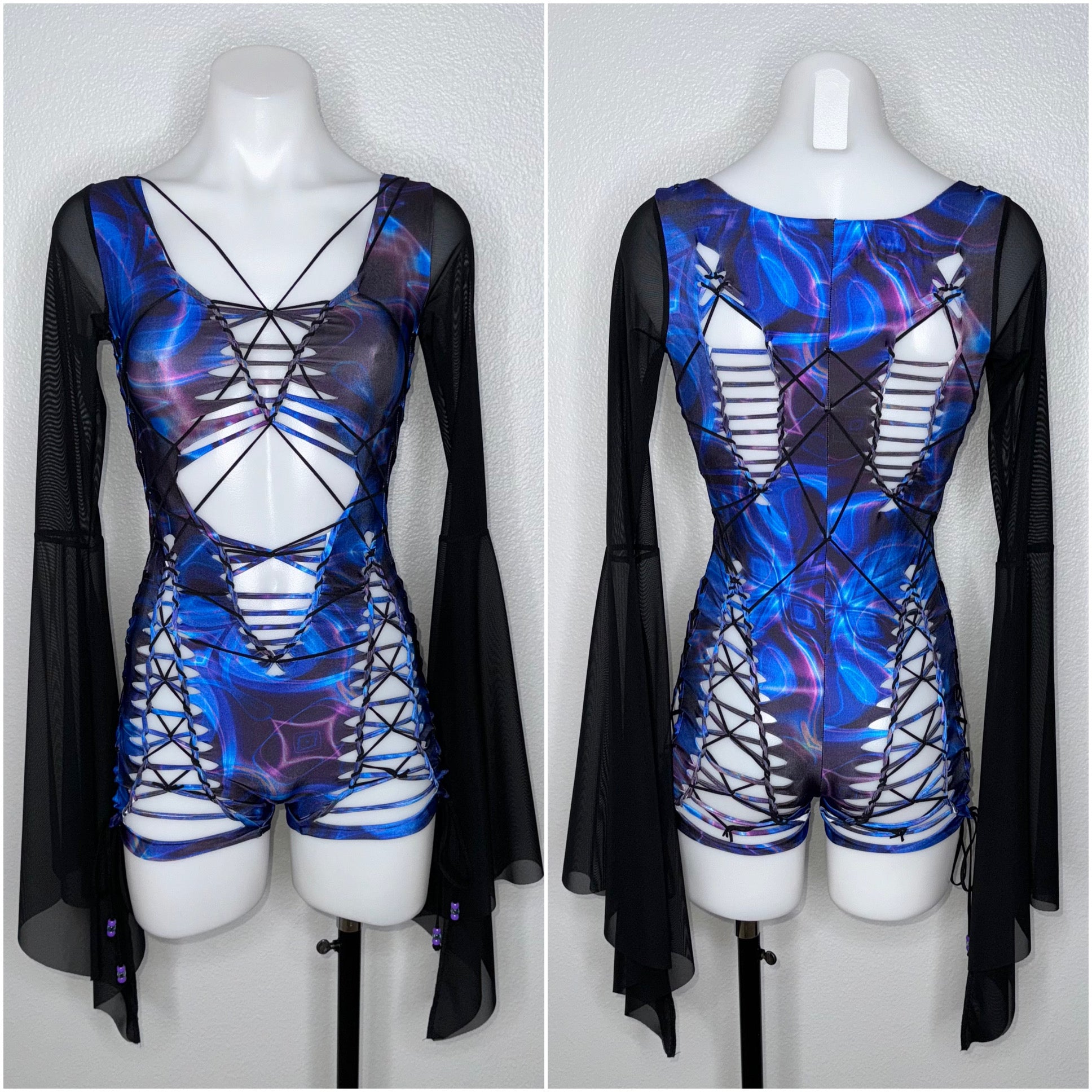 Fabric of playsuit is one layer of light weight nylon/spandex blend (4-way stretch and breathable) and sleeves are power mesh.