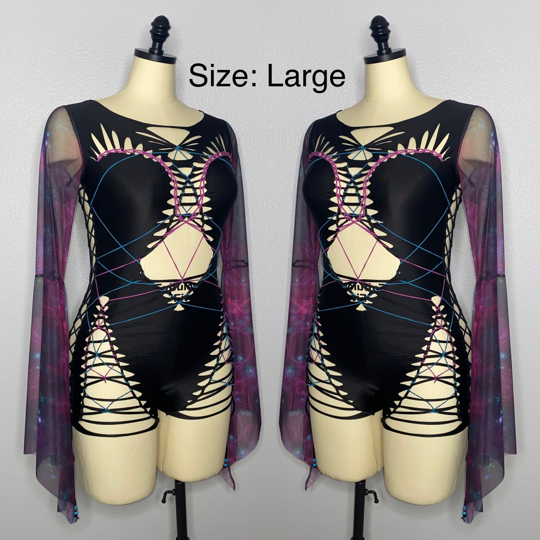Fabric of bodysuit is one layer of light weight nylon/spandex blend (4-way stretch and breathable) and sleeves are power mesh.