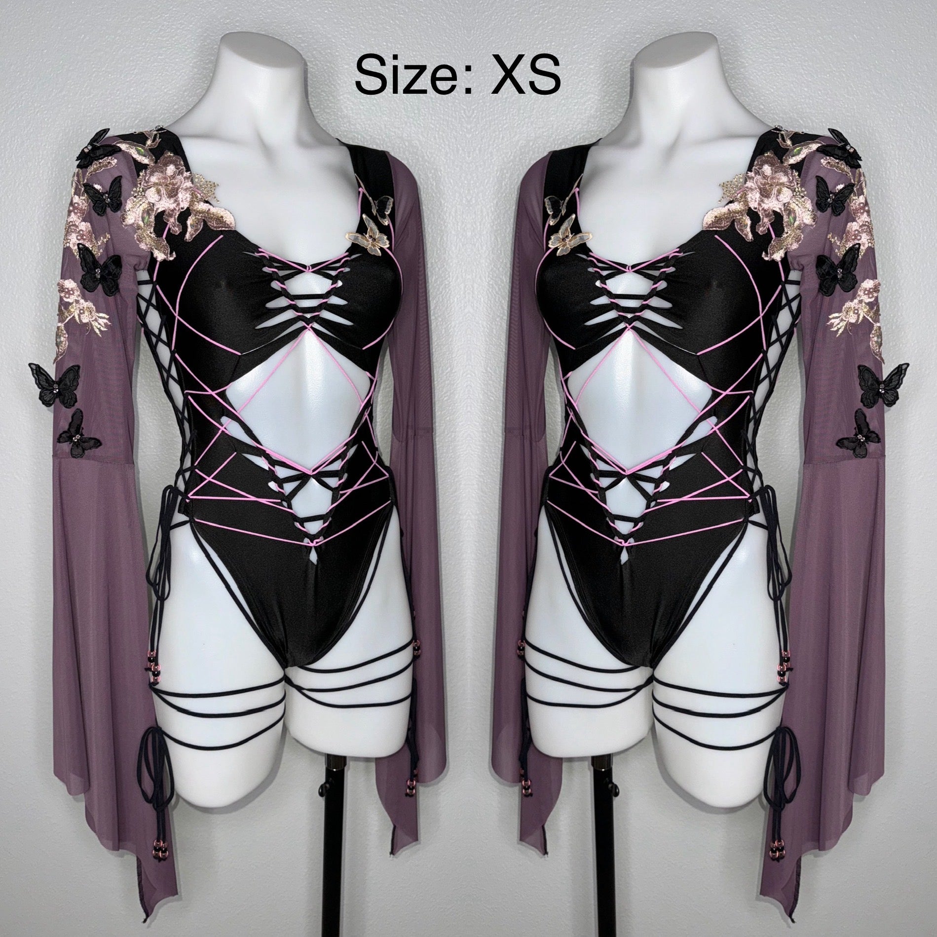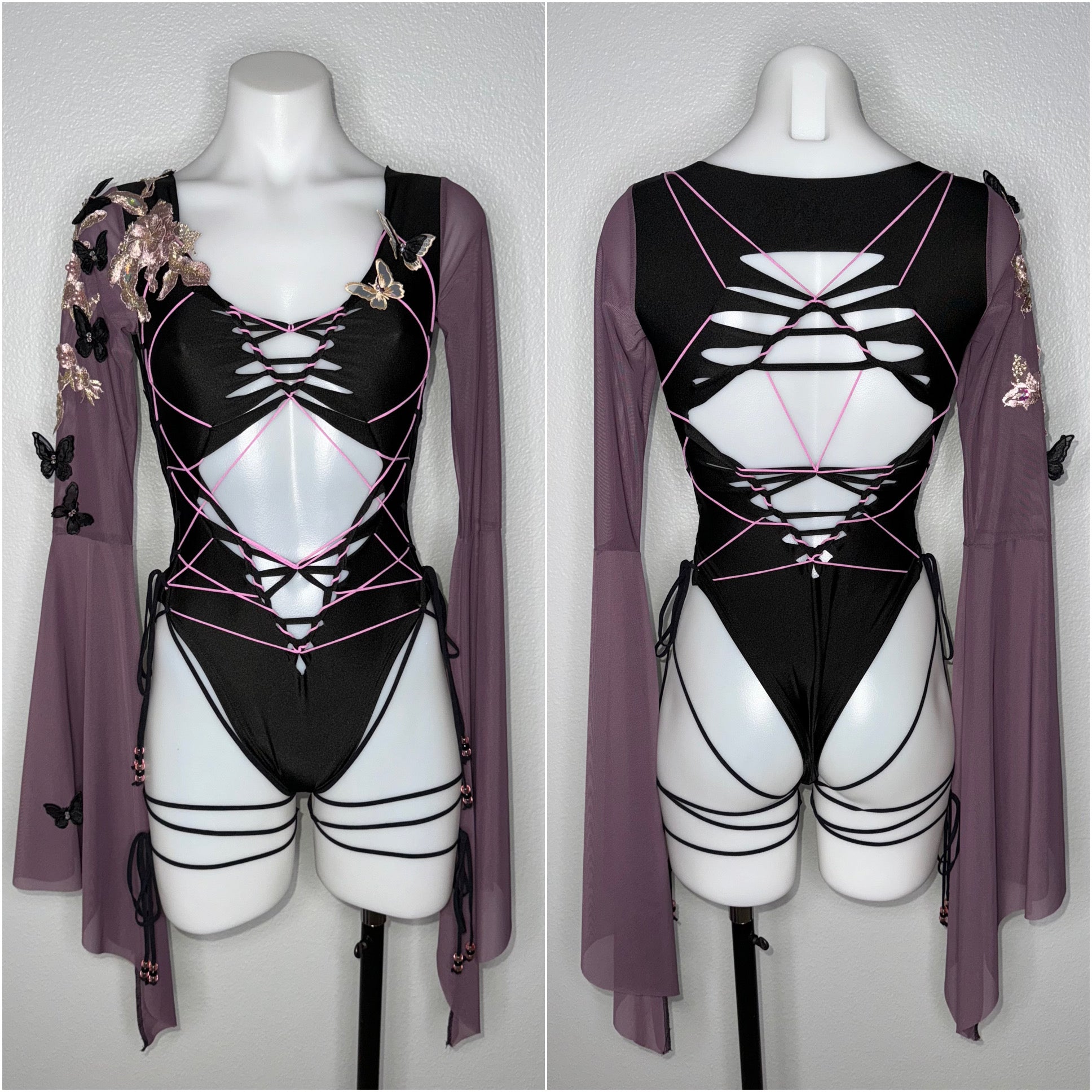 Fabric of bodysuit is one layer of light weight nylon/spandex blend (4-way stretch and breathable) and sleeves are power mesh.