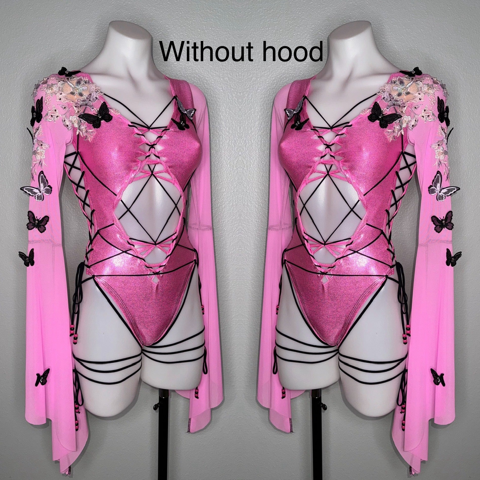 Fabric of bodysuit is one layer of light weight nylon/spandex blend (4-way stretch and breathable) and sleeves are power mesh.