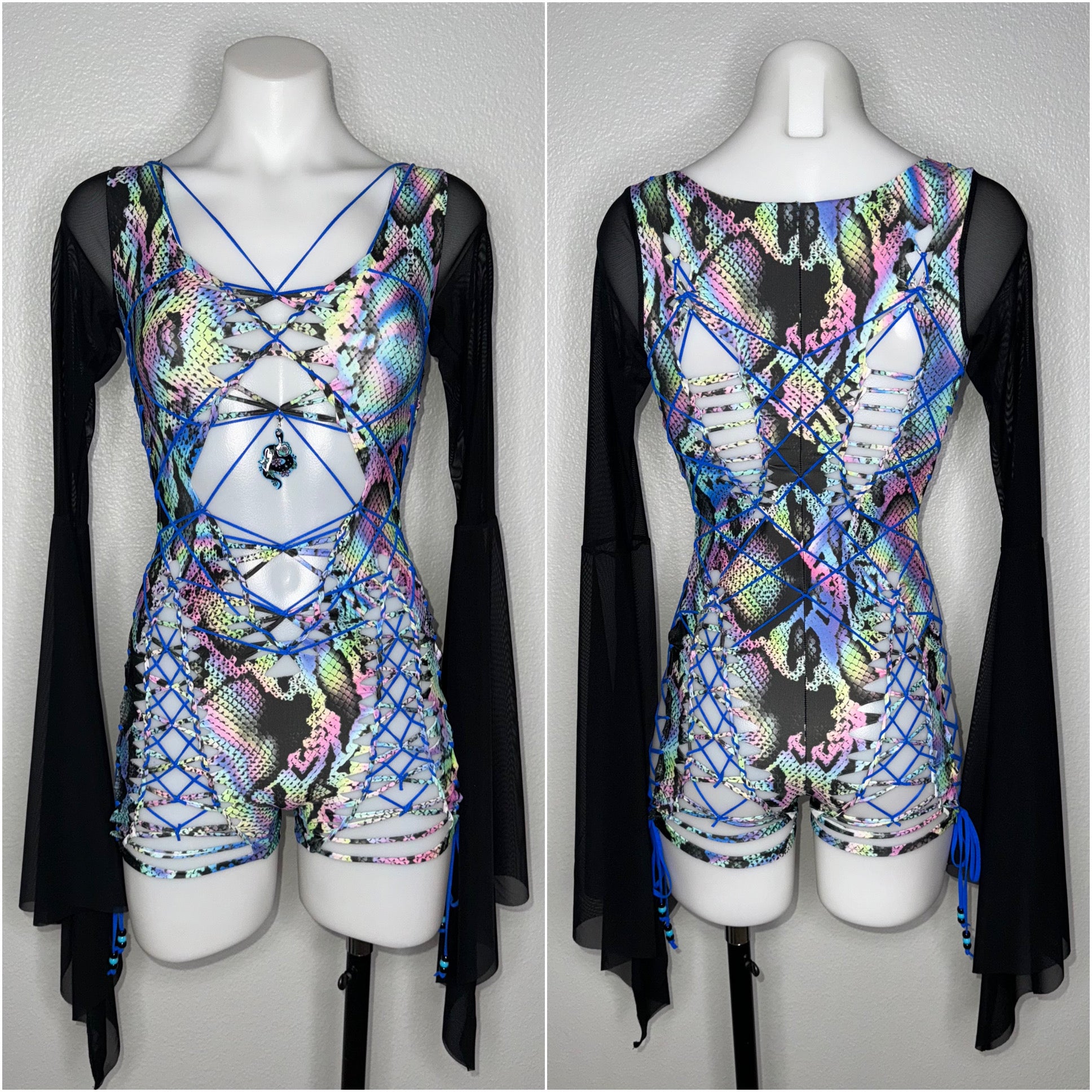 Fabric of bodysuit is one layer of light weight nylon/spandex blend (4-way stretch and breathable) and sleeves are power mesh.